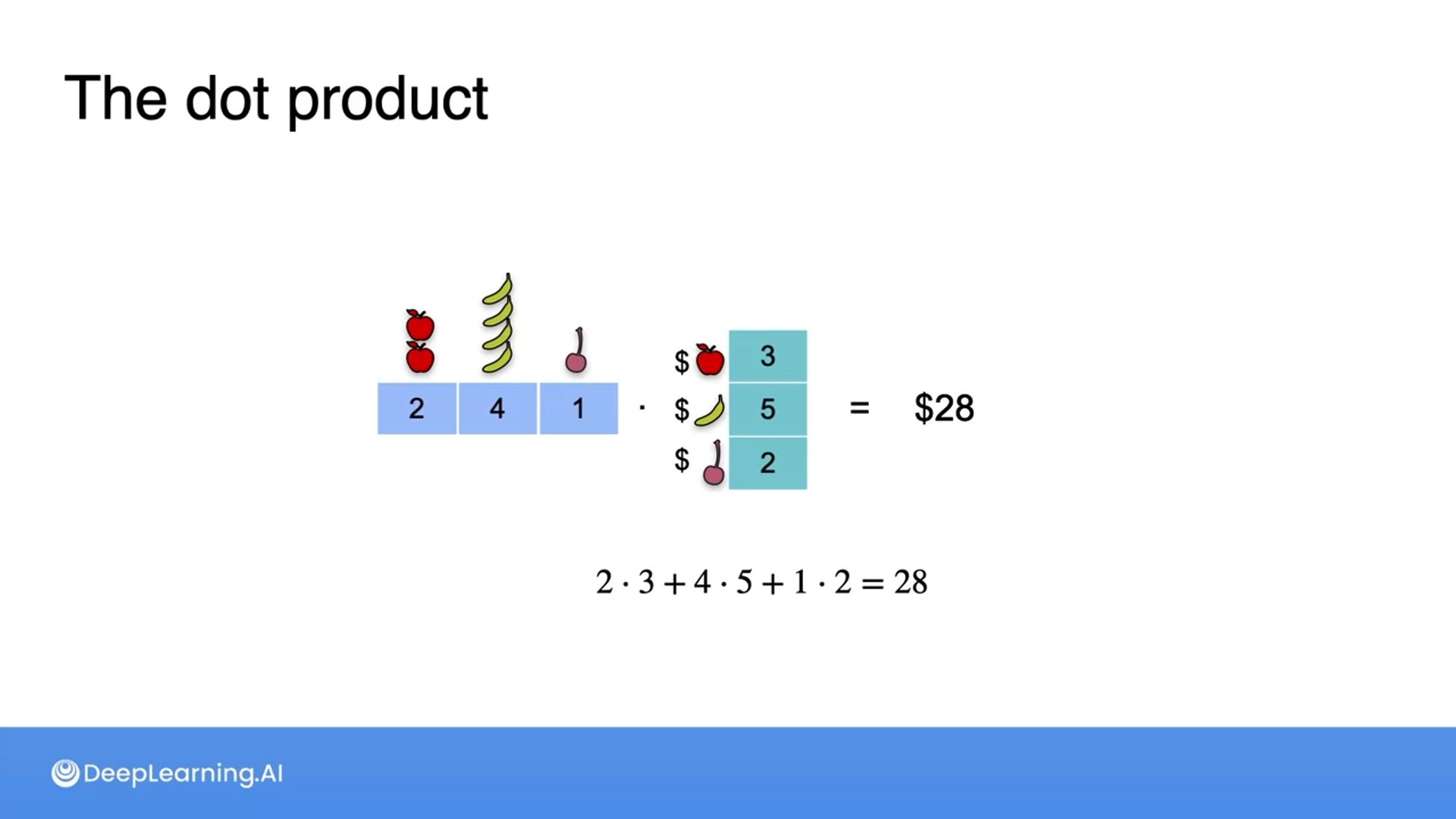 We get the dot product by multiplying the corresponding coordinates and adding them