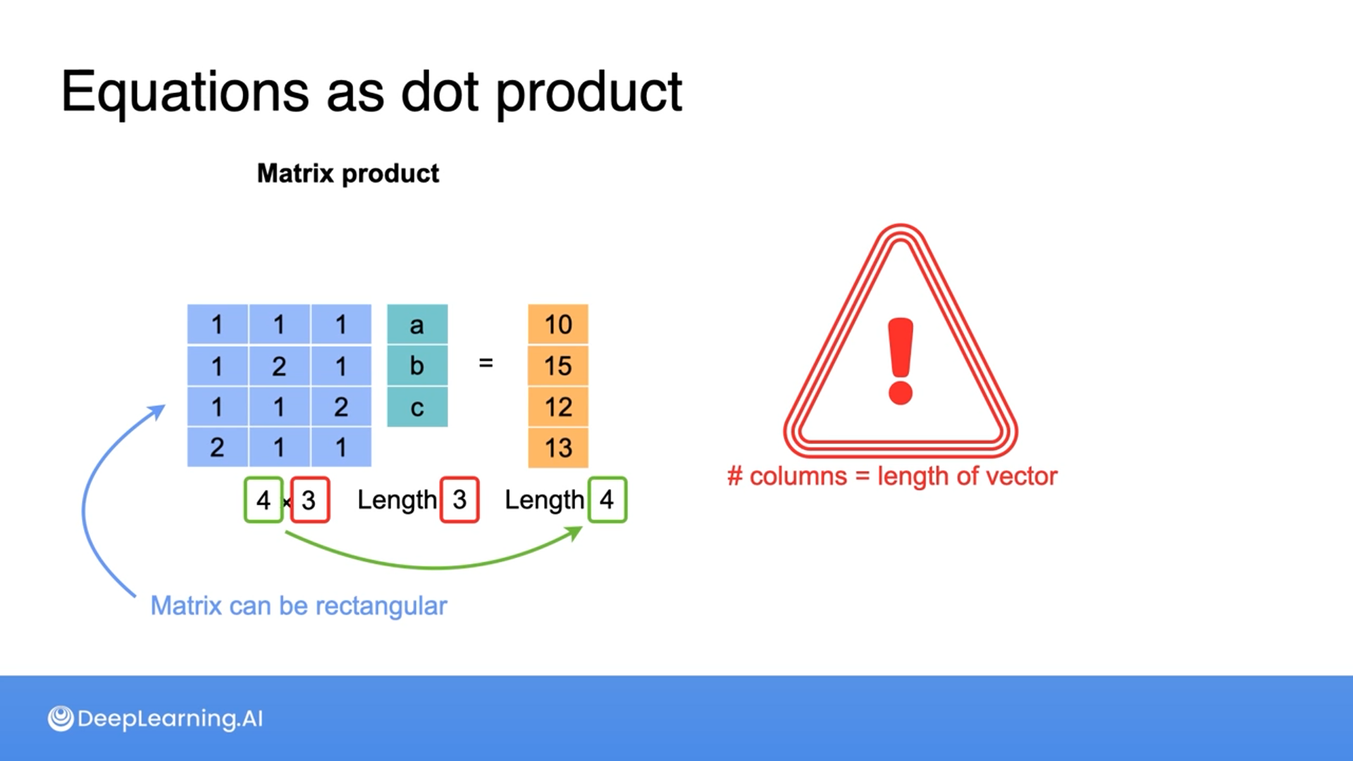 A matrix can be rectangular and one caution to take is that the number of columns of a matrix needs to match the length of a vector