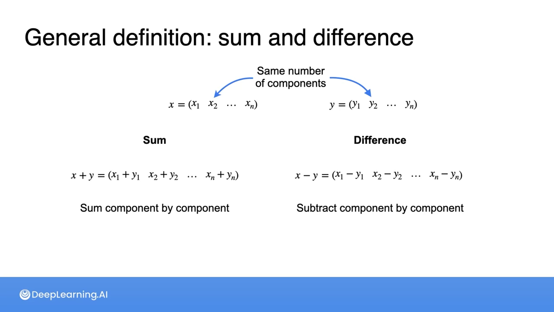 We can get the sum and difference of vectors by adding or subtracting corresponding coordinates