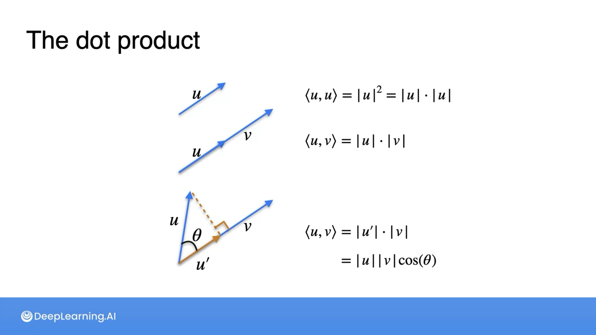 If we know the angle between the vectors, multiplying the norms of the vectors by the cosine of the angle would achieve the same result