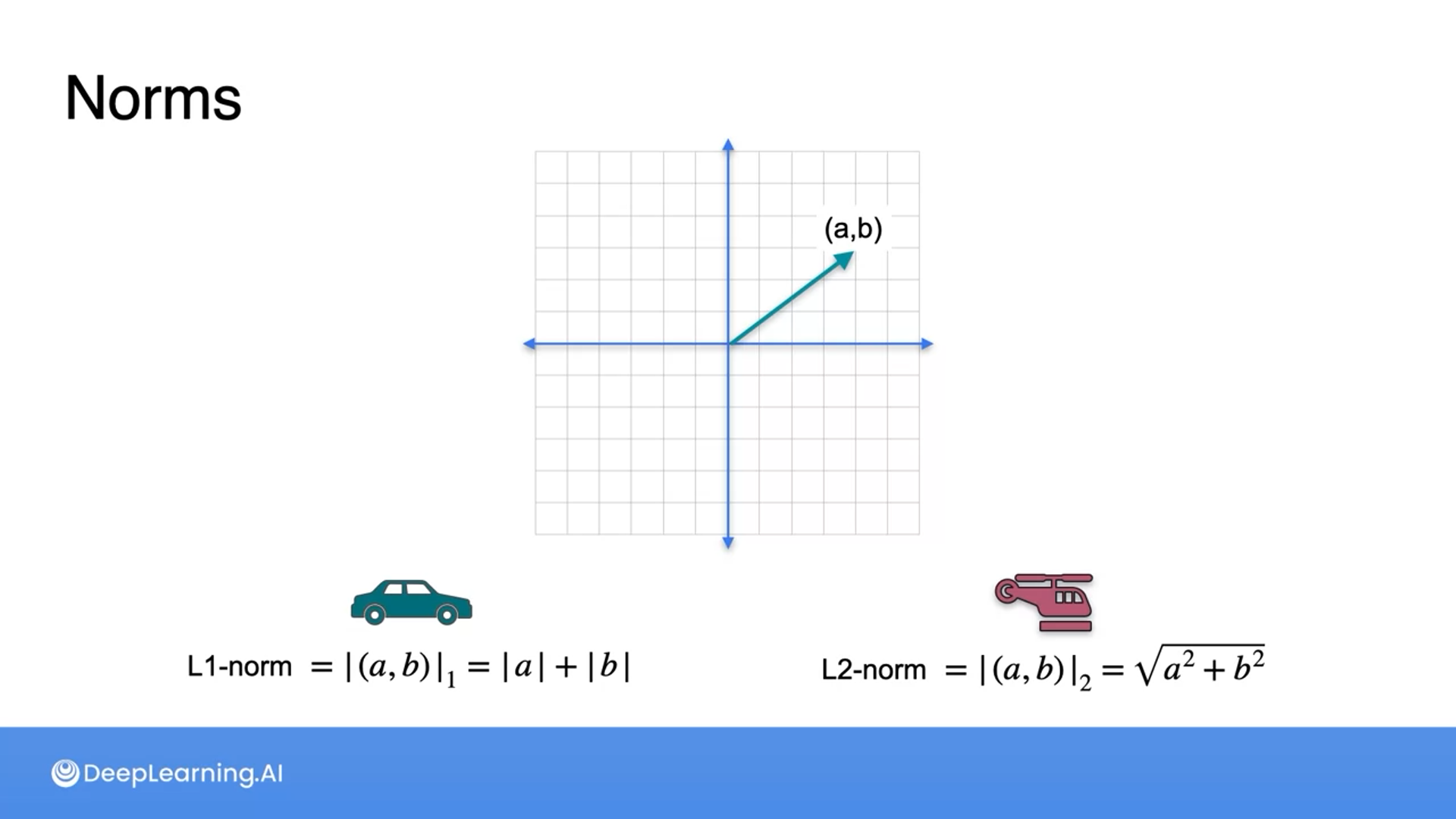 - L2-norm (aka Euclidean norm) is the square root of the squared points, for simplicity we can think of it as calculating the hypotenuse of a triangle using the Pythagorean theorem