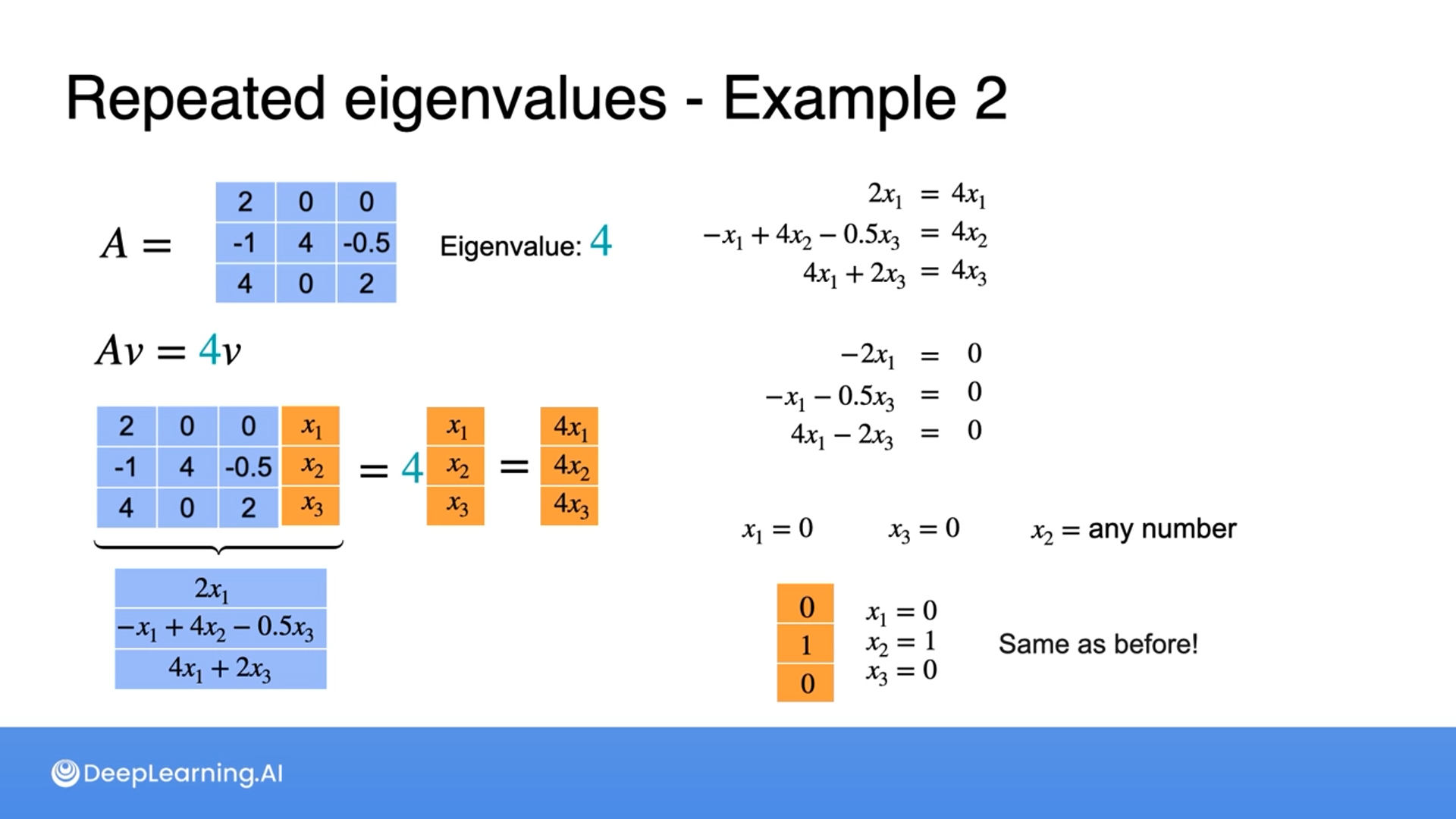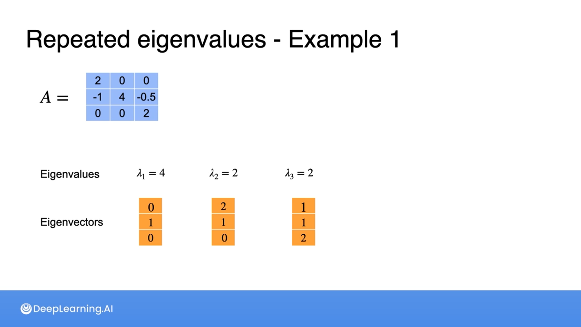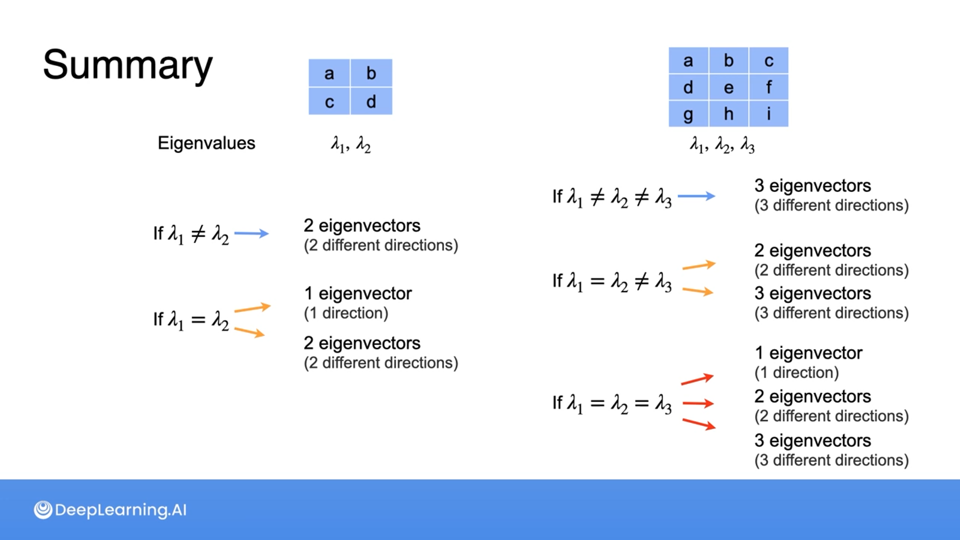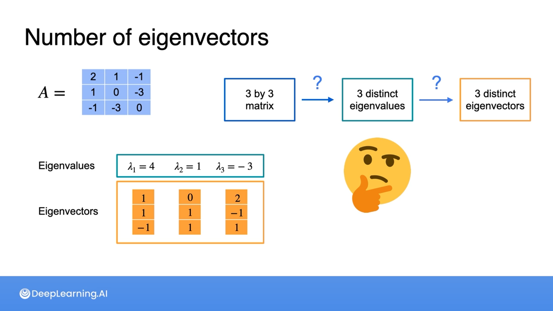 The number of eigenvectors depends on the number of distinct eigenvalues