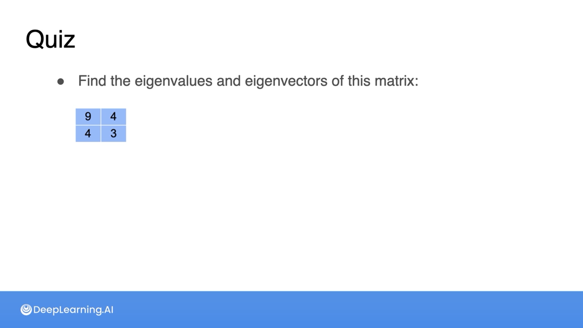 To find eigenvalues and eigenvectors we need to use a characteristic polynomial: