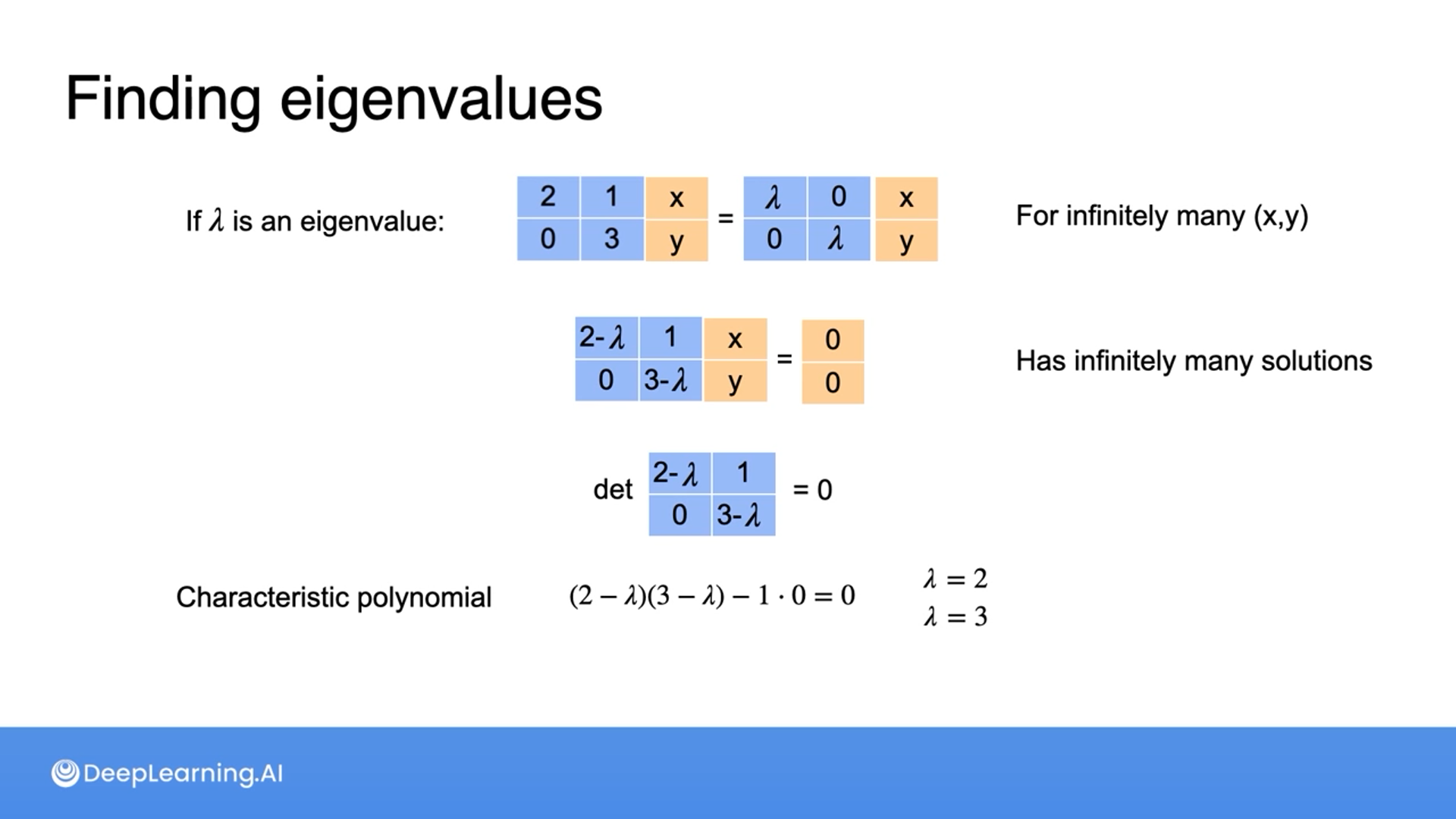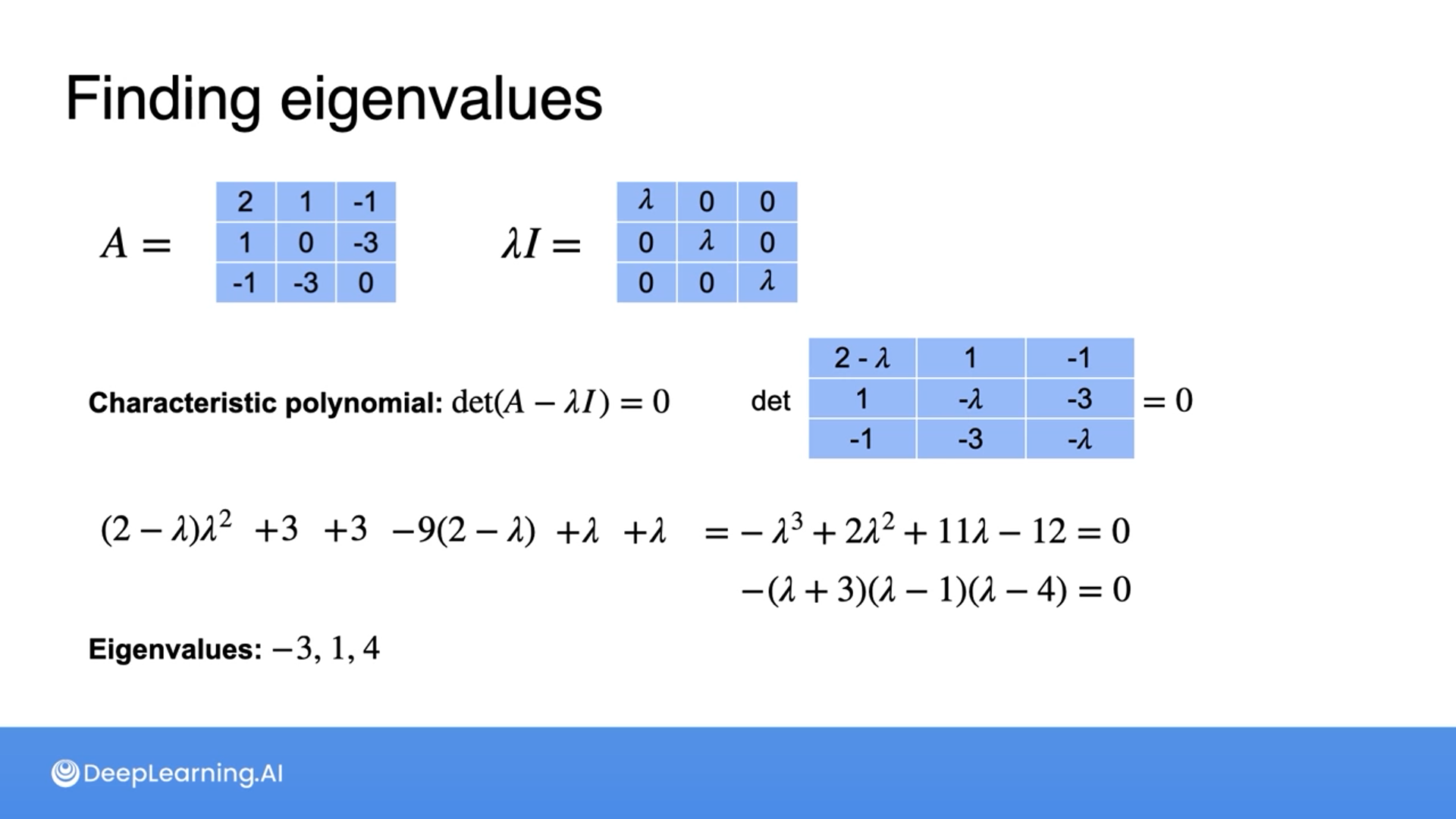 We use the characteristic polynomial (solve for the equation) to find the eigenvalues