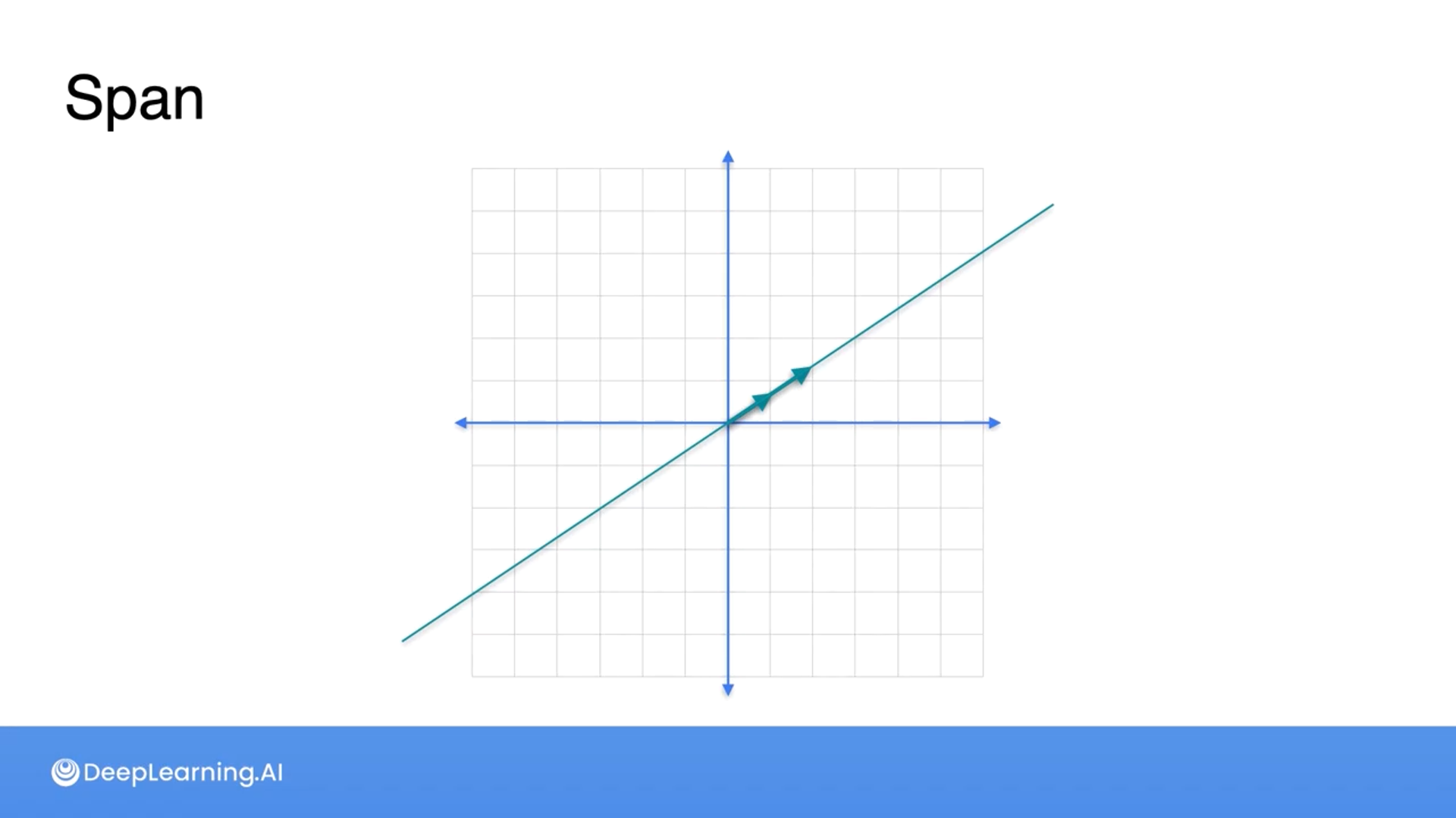 The span of vectors is a set of points that can be reached by walking in the direction of these vectors in any combination
