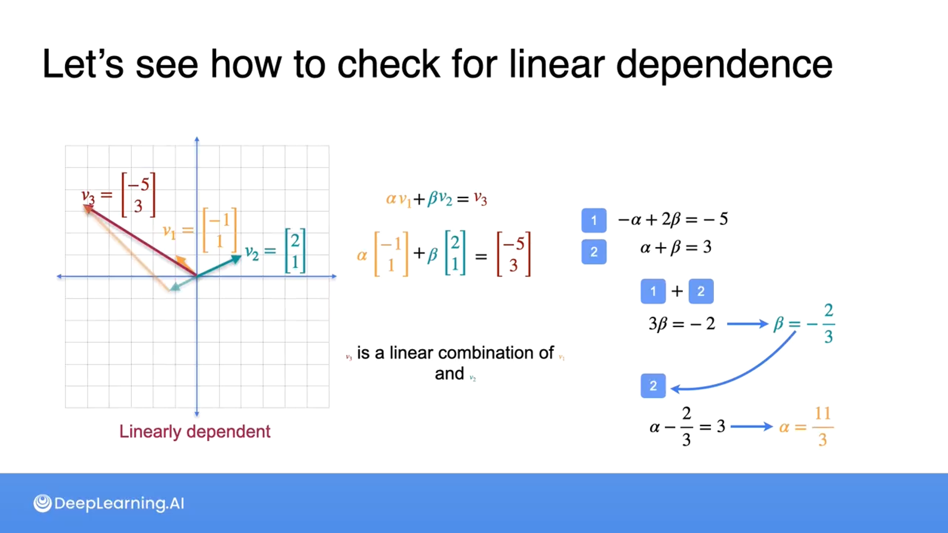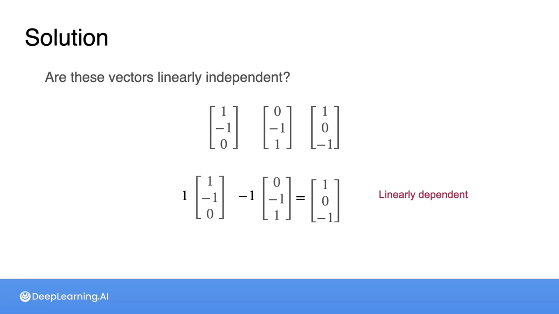 Linearly dependent: When one vector can be obtained as a linear combination of the others
