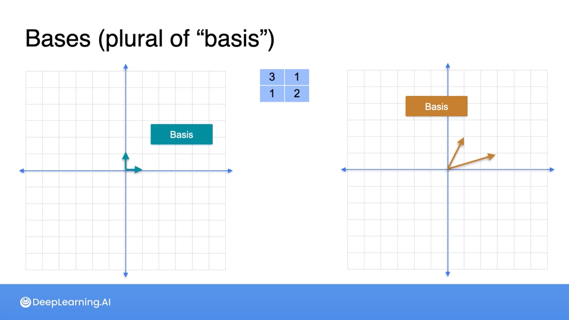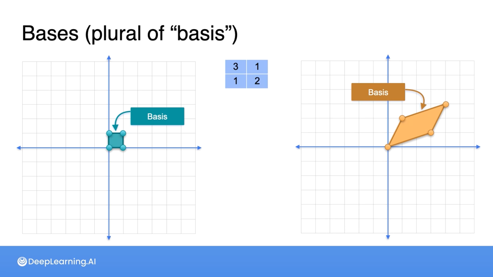 Basis: Two vectors coming from the origin that define the plots (square, parallelogram, etc)