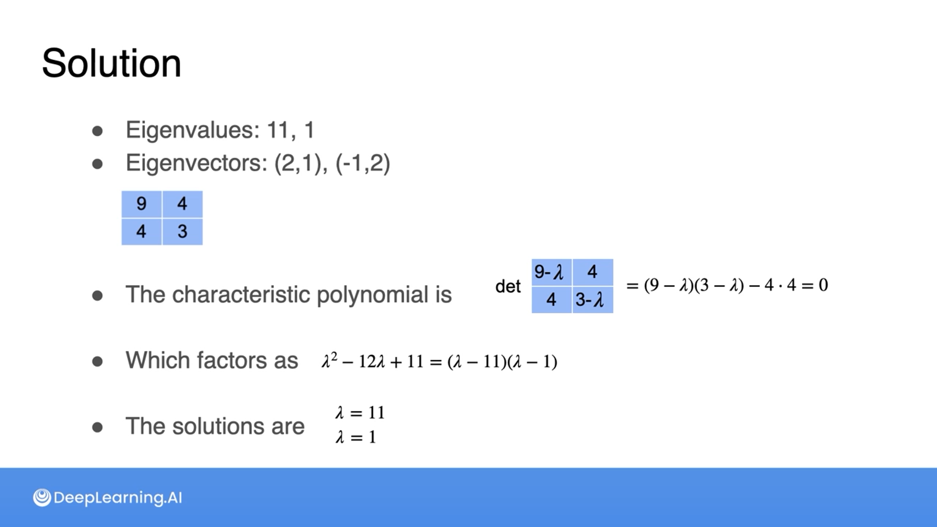 The solutions for the equation are: $\lambda_1 = 11$ and $\lambda_2 = 1$