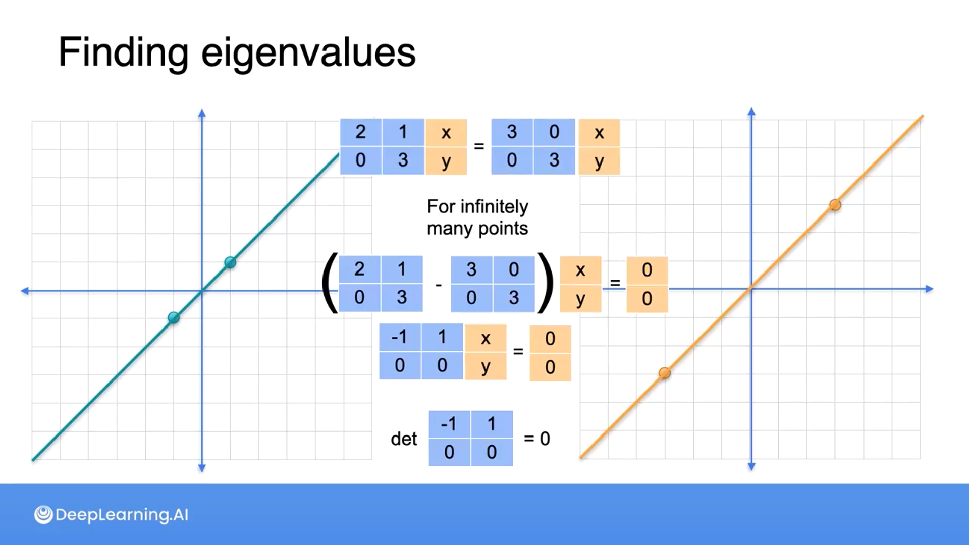 When two linear transformations coincide or match infinitely many points, it indicates that something non-singular is happening. In this case, the difference between the two matrices results in a singular matrix and the determinant is zero.