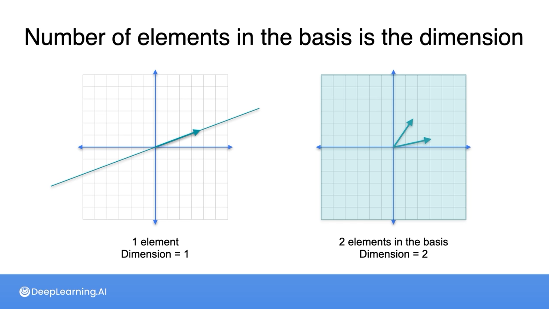 For instance, to cover a line, we need 1 element (1 direction) and to cover a plane, we need 2 elements (2 directions)