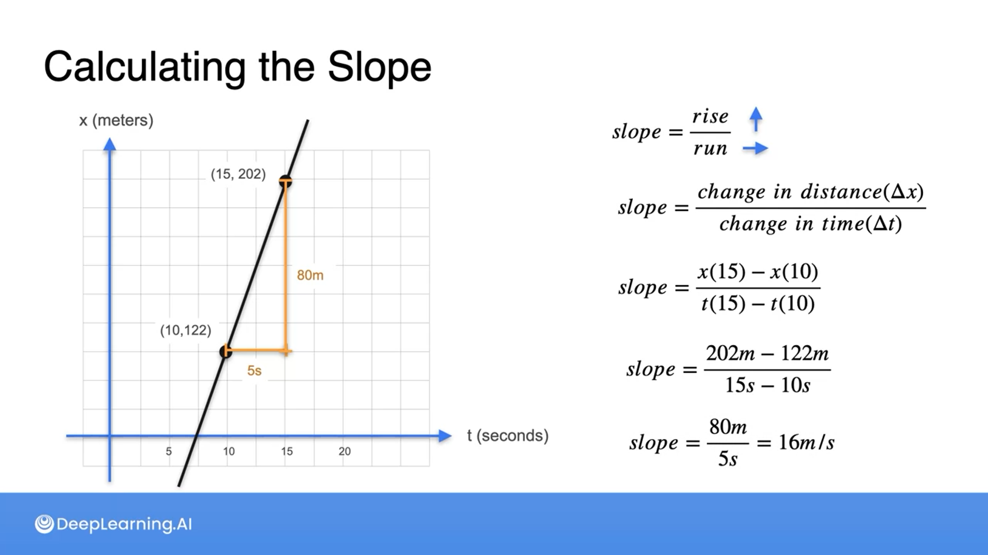 A measure of how fast the distance is changing to time is called the instantaneous rate of change and it is the slope at a given point.
