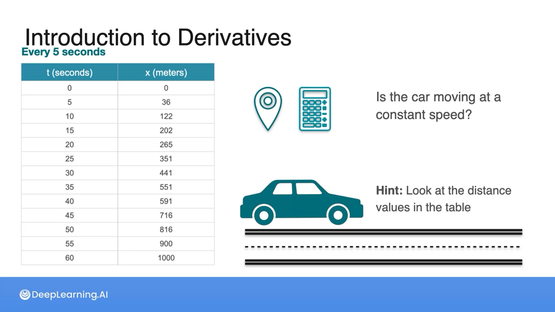 Using the velocity example, a function is the distance and the derivative is the velocity.