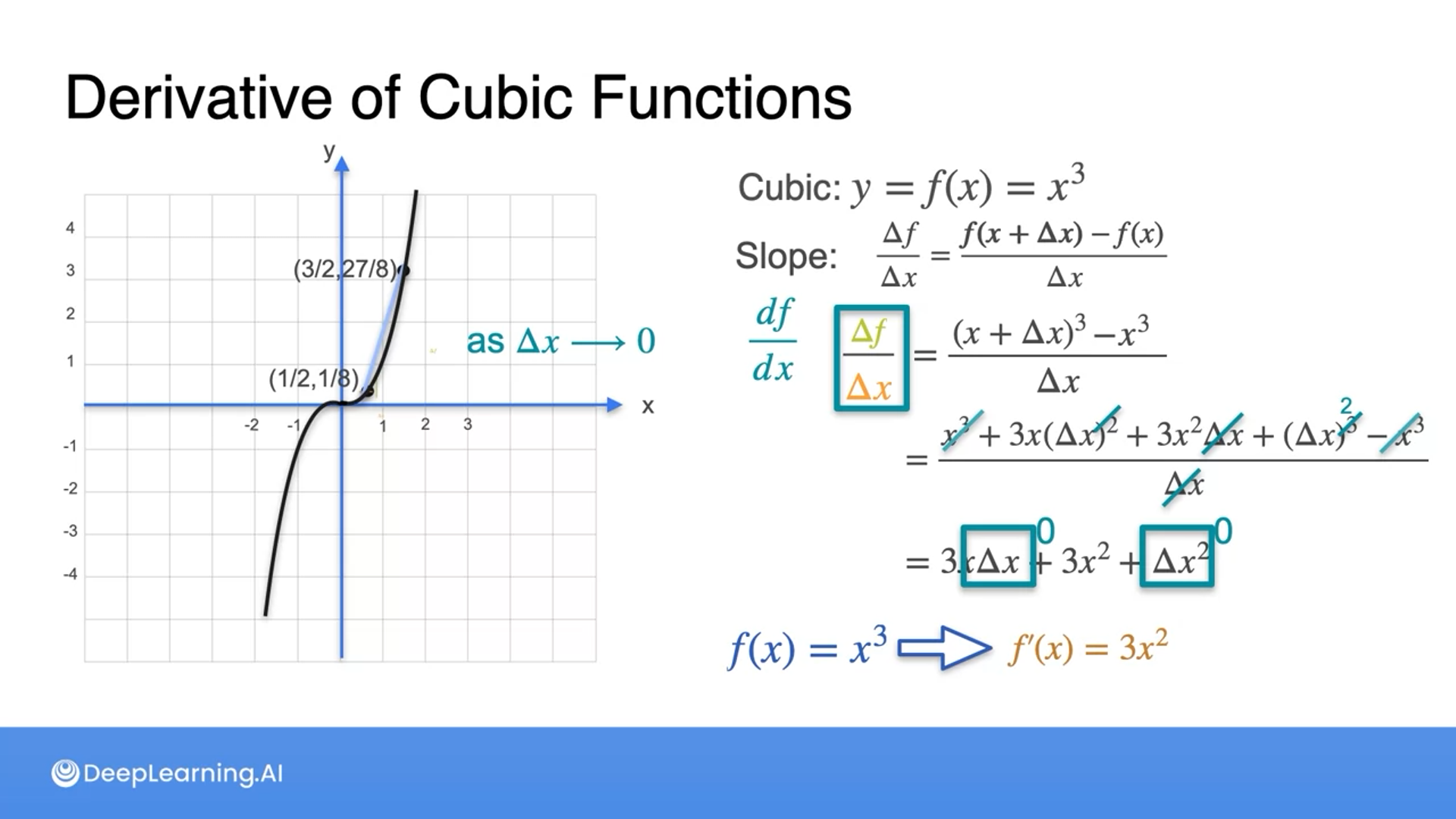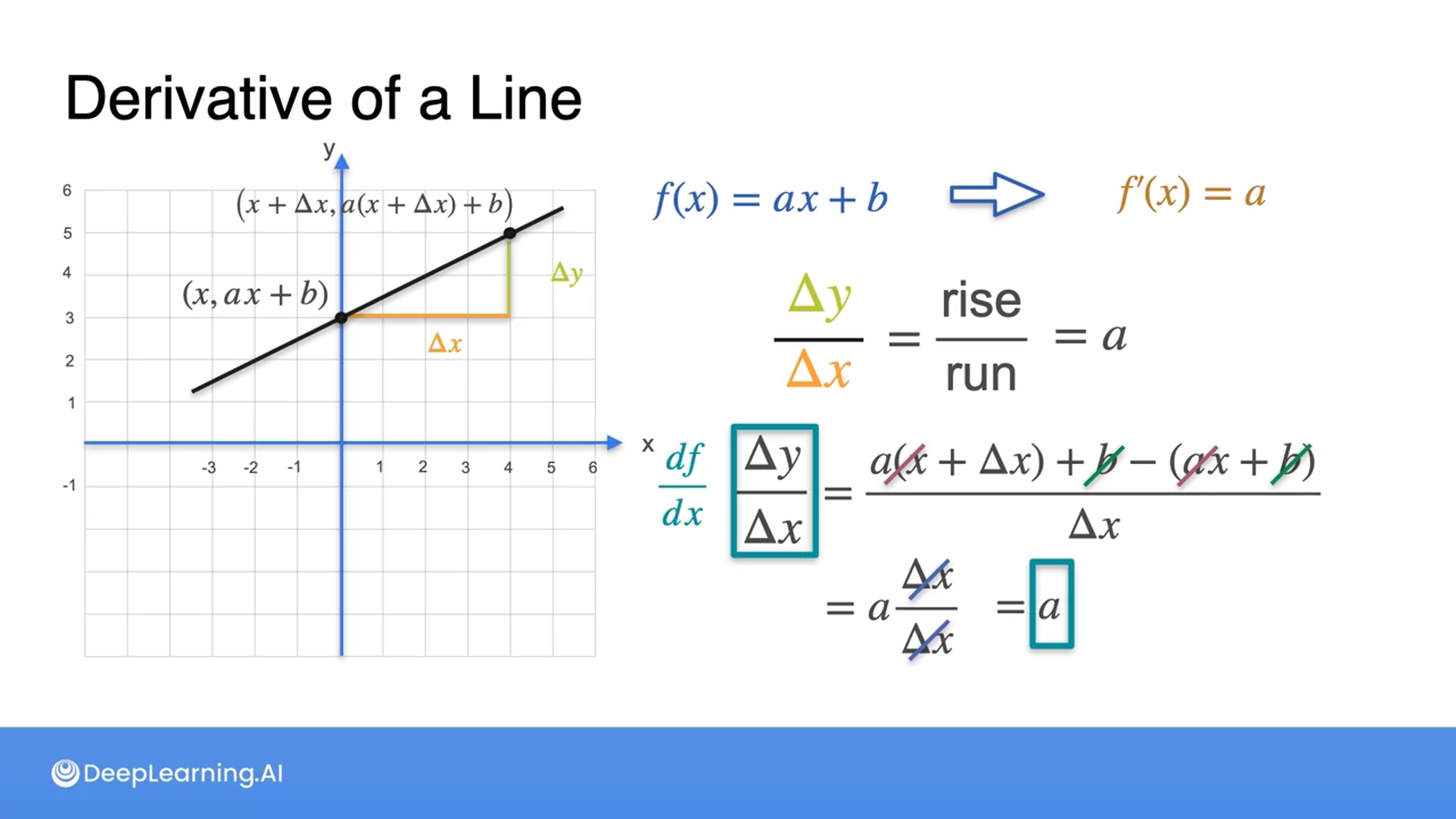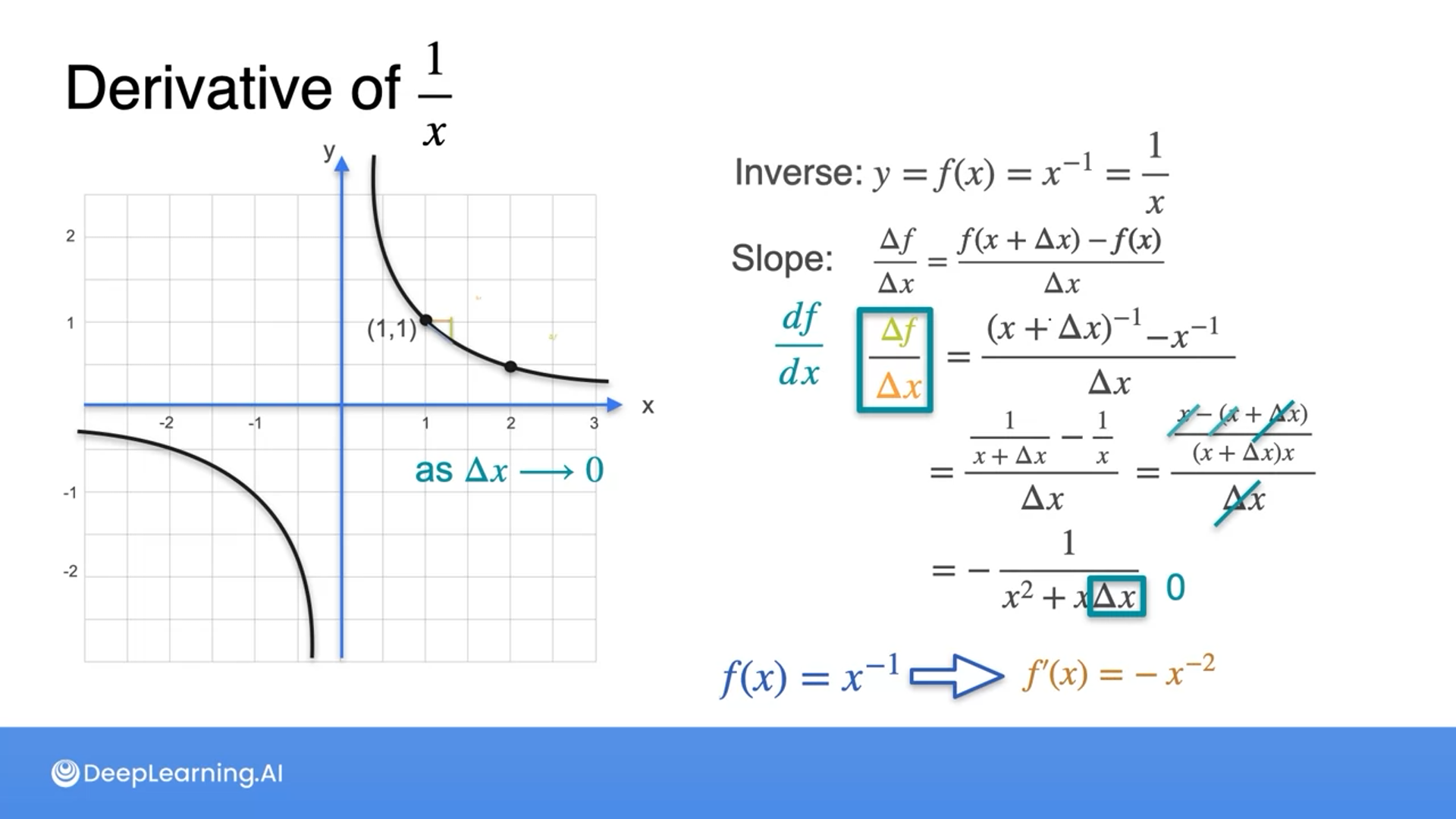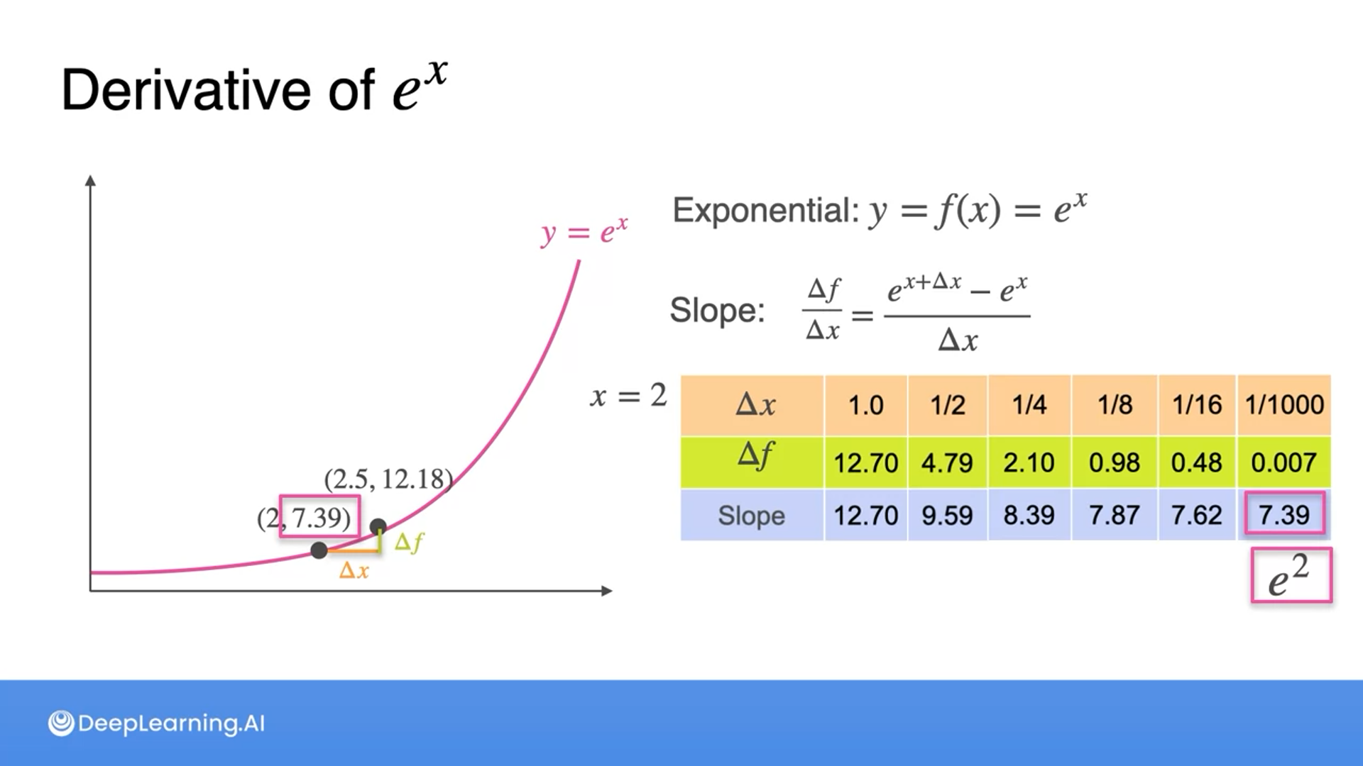 For the above slide, plug in the values for $\Delta x$ (the change in $x$) and $x$, where $x = 1$ to get $\Delta f$ and then the slope