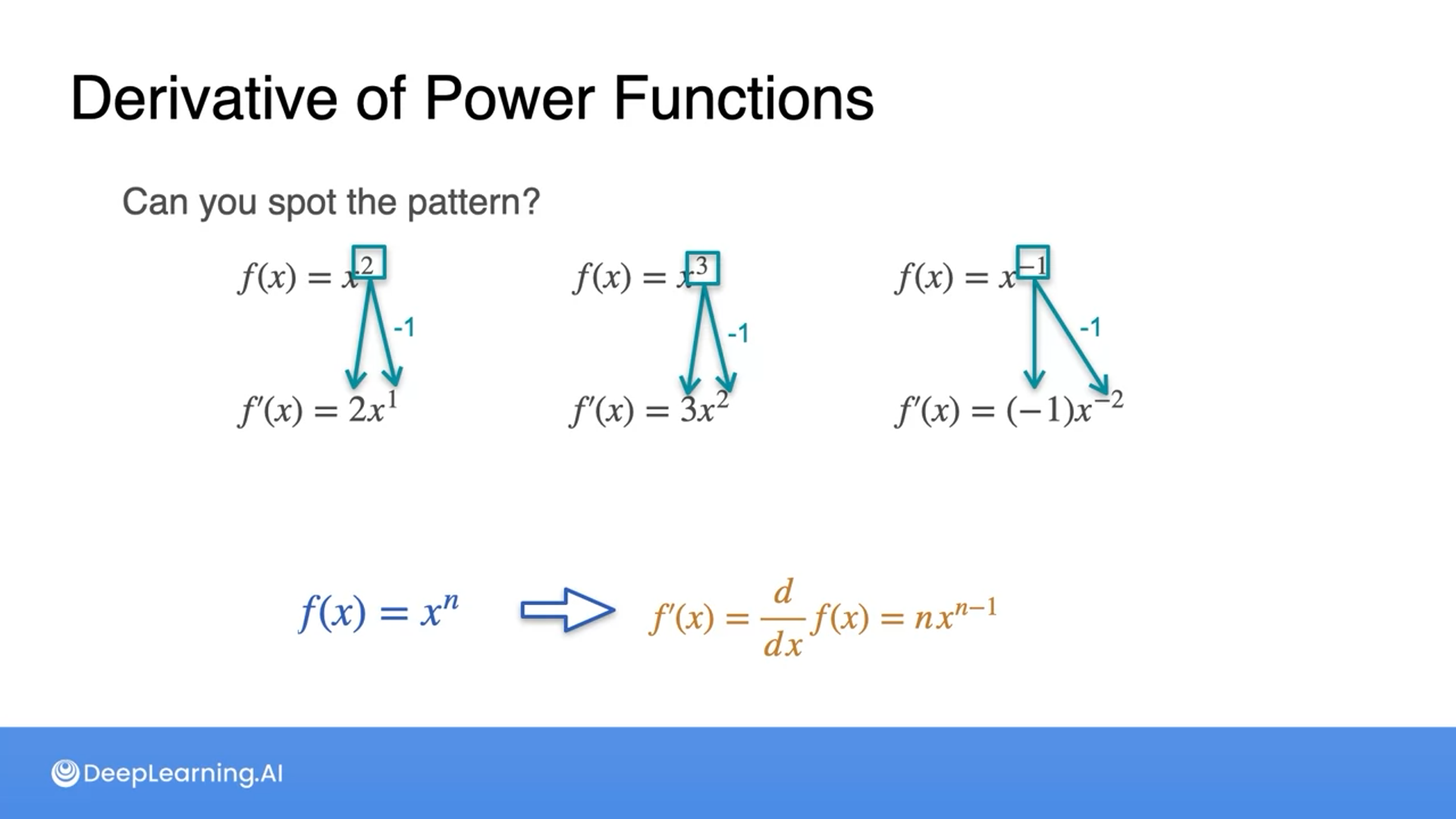 For all power functions, the exponent goes to a scalar value, and the exponent is subtracted by 1 as the new exponent.