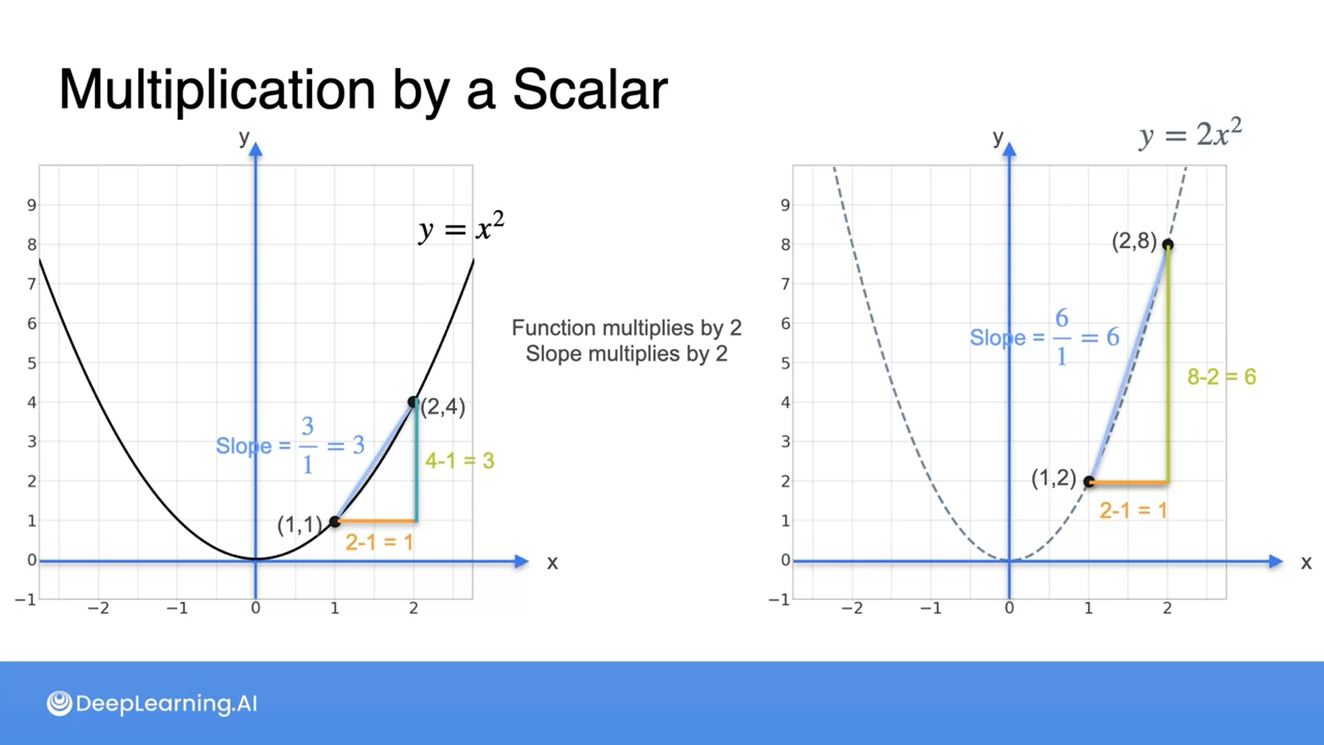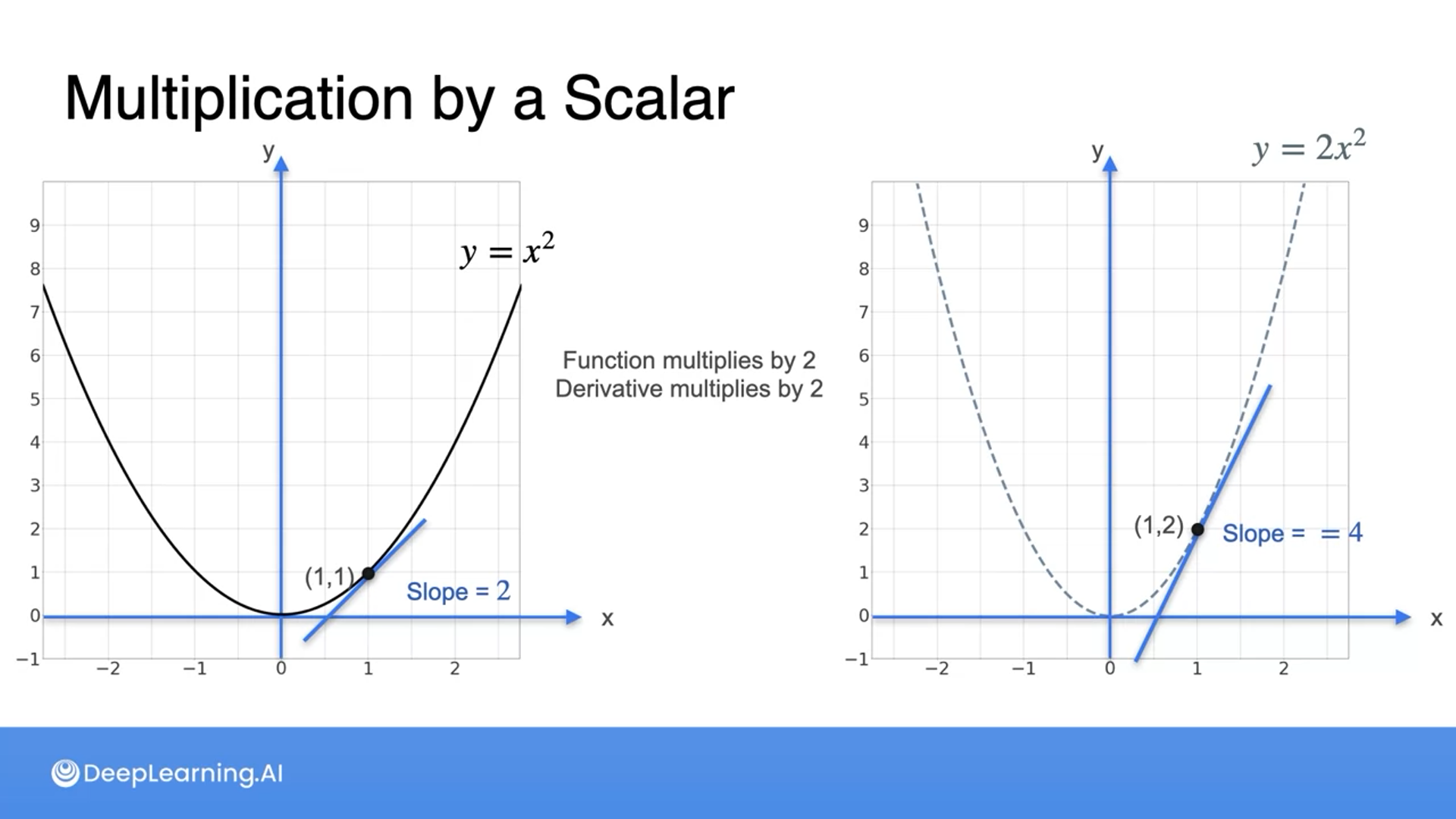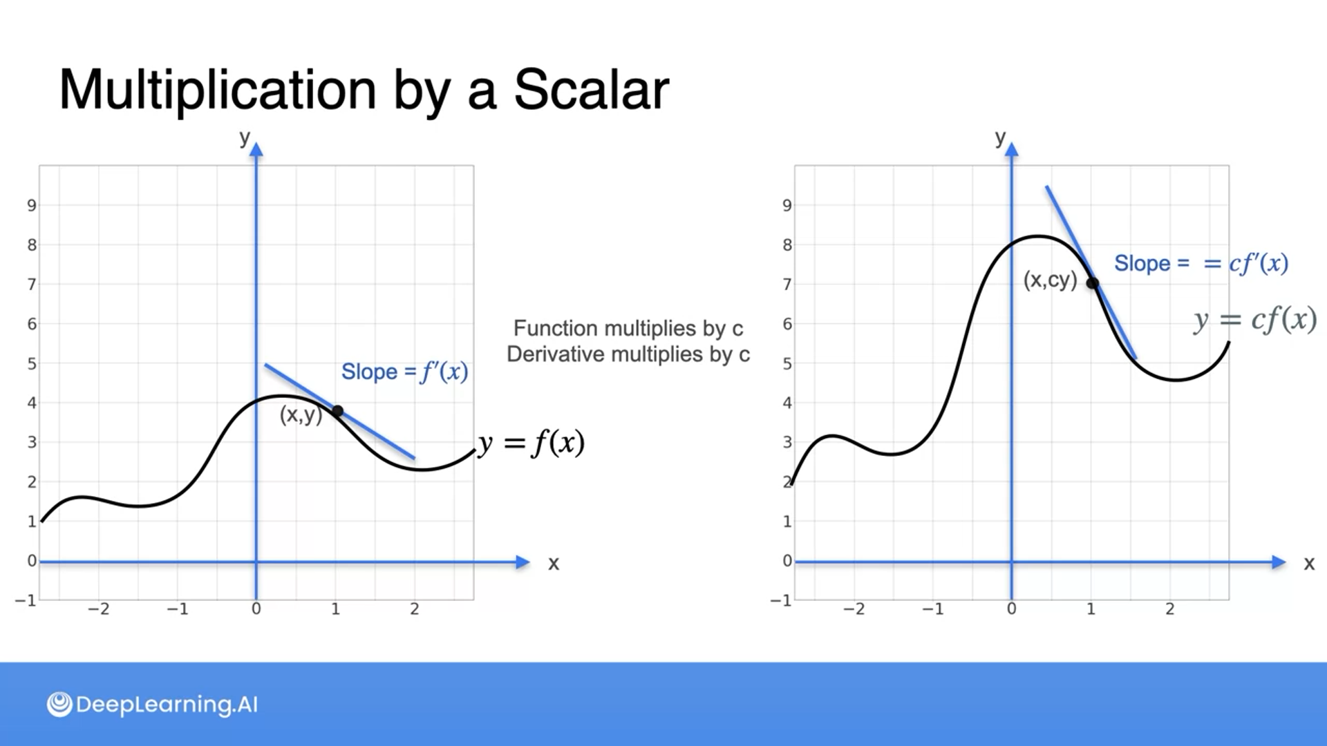 When the function is multiplied by a scalar then the derivative is also multiplied by a scalar.