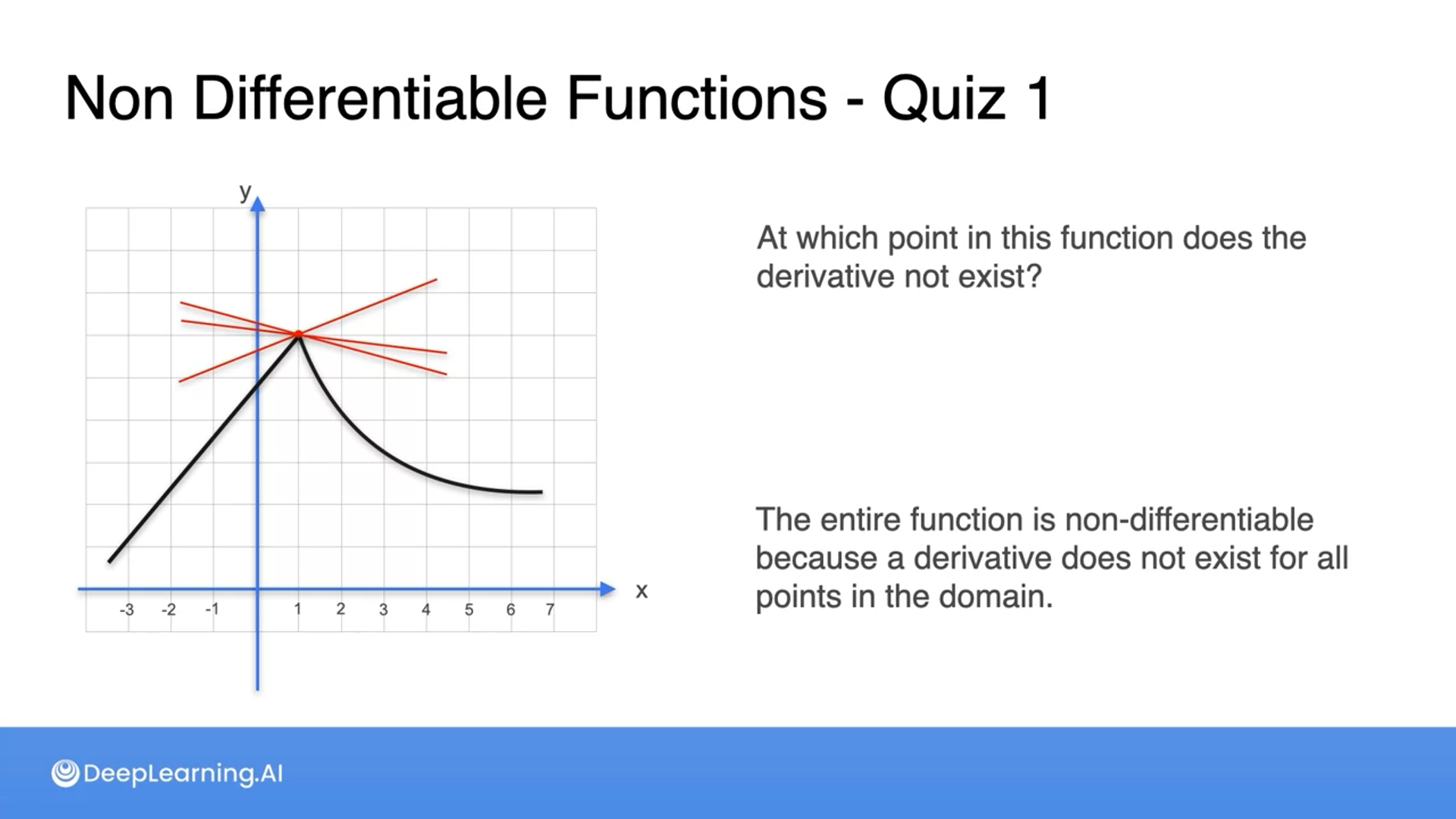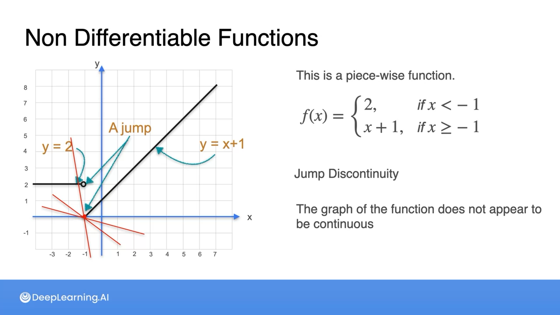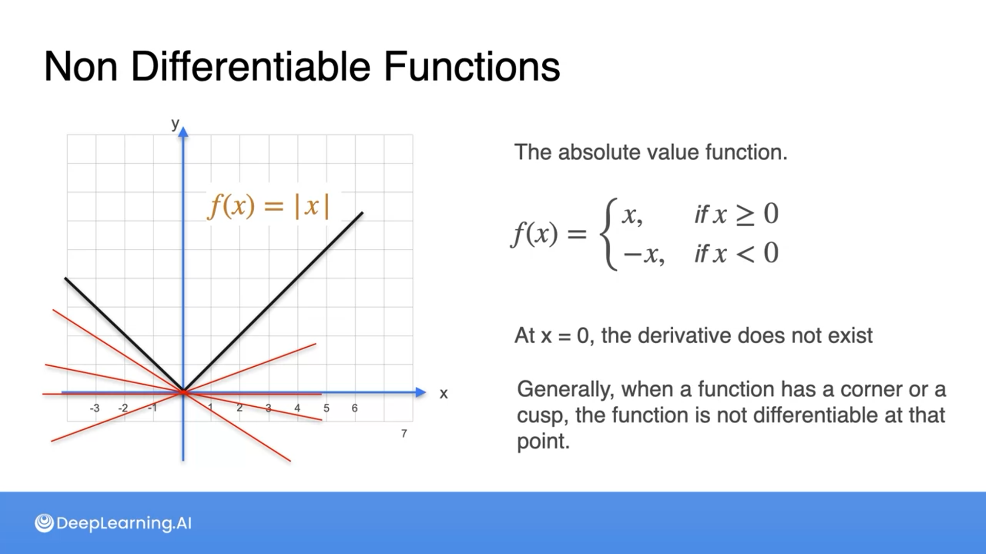 Functions where we cannot find the derivative at every point are called the non-differentiable functions.