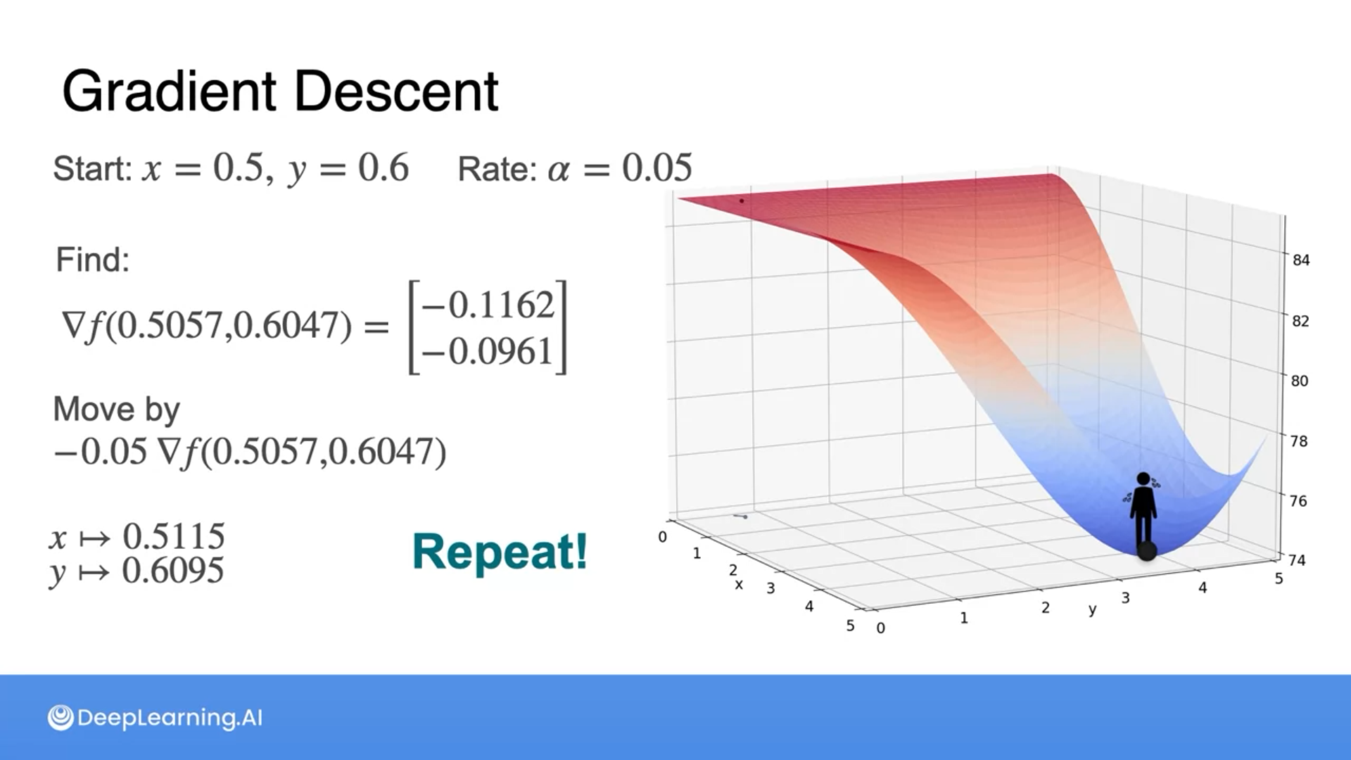 Then multiply by the learning rate to get to a new point.