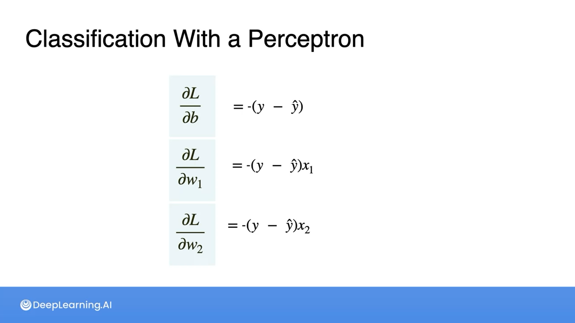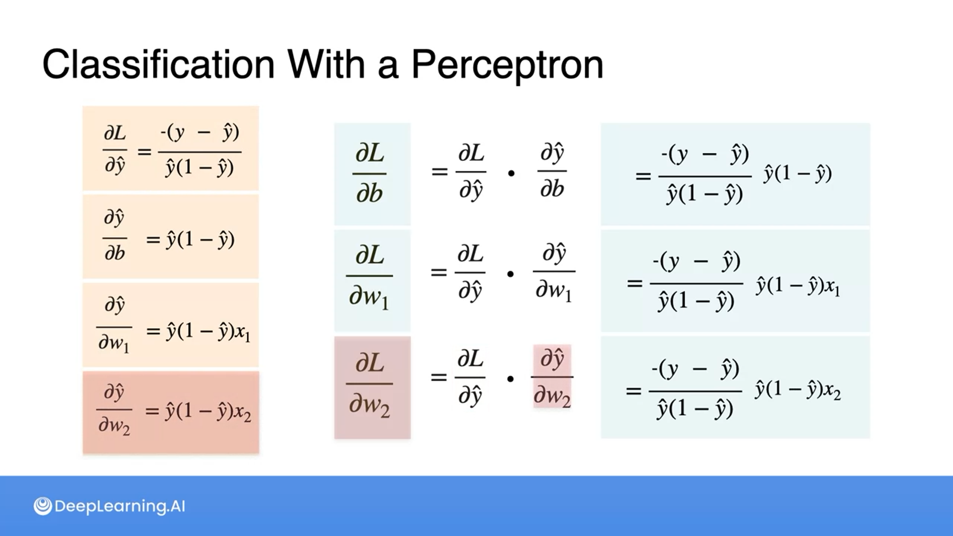 Classification with Perceptron - Calculating the derivatives
