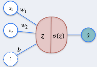 - $z = w_1x_1+w_2x_2+b$ and $\sigma(z) = {1\over 1+e^{-z}}$
