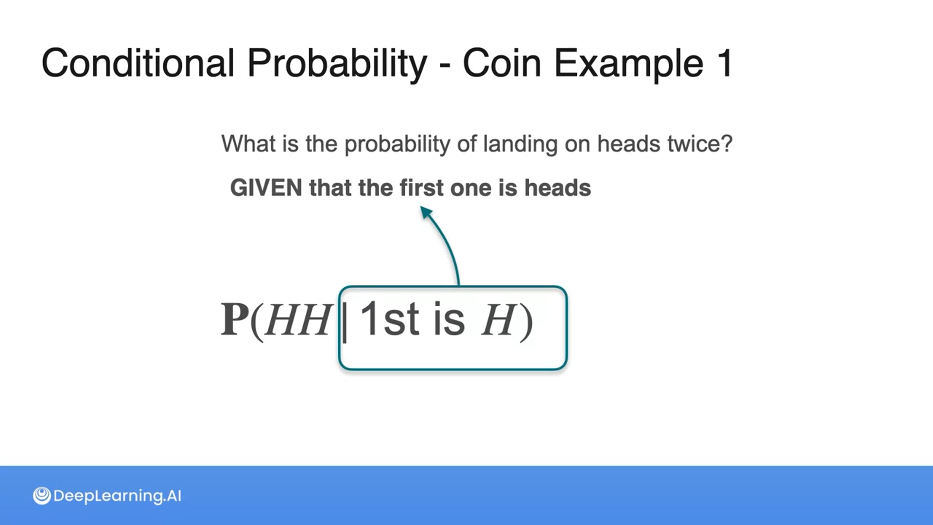 Correct! If the first coin lands in tails, it is impossible to get two heads.