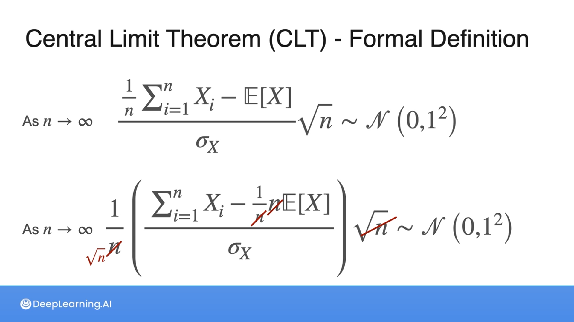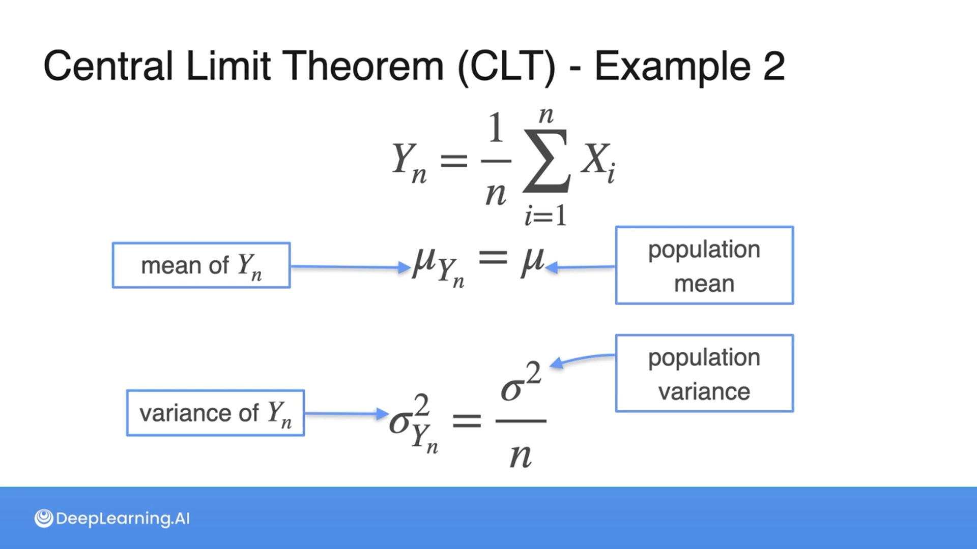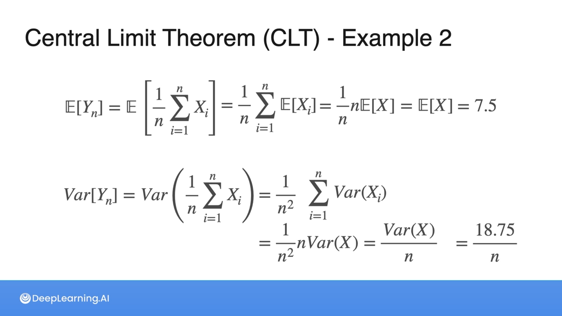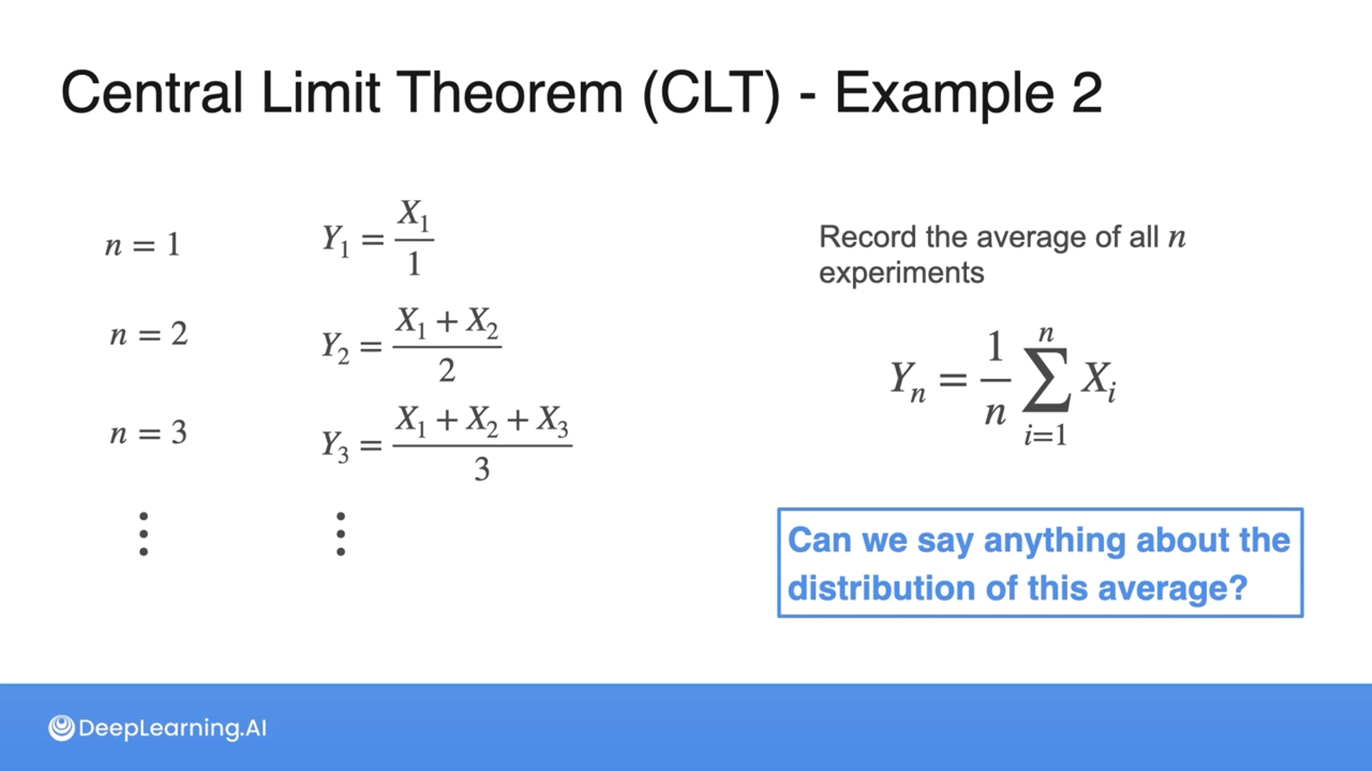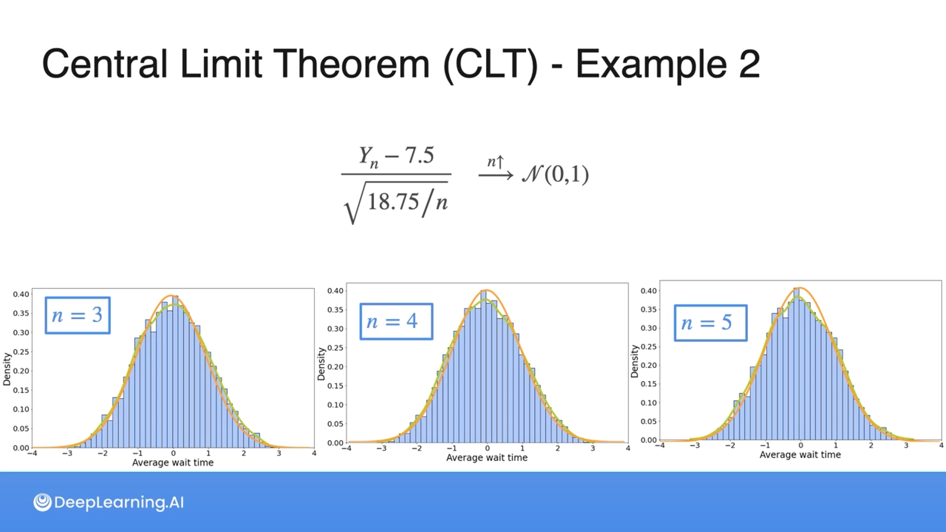 Central Limit Theorem: as n (number of samples) gets larger, the distribution forms more of the Gaussian (normal) distribution.