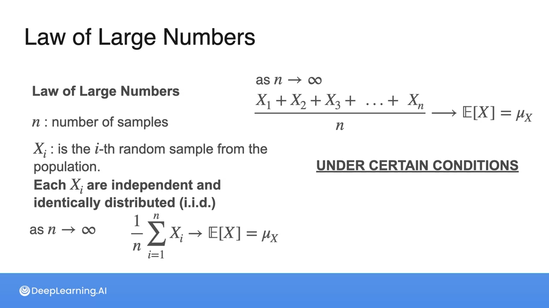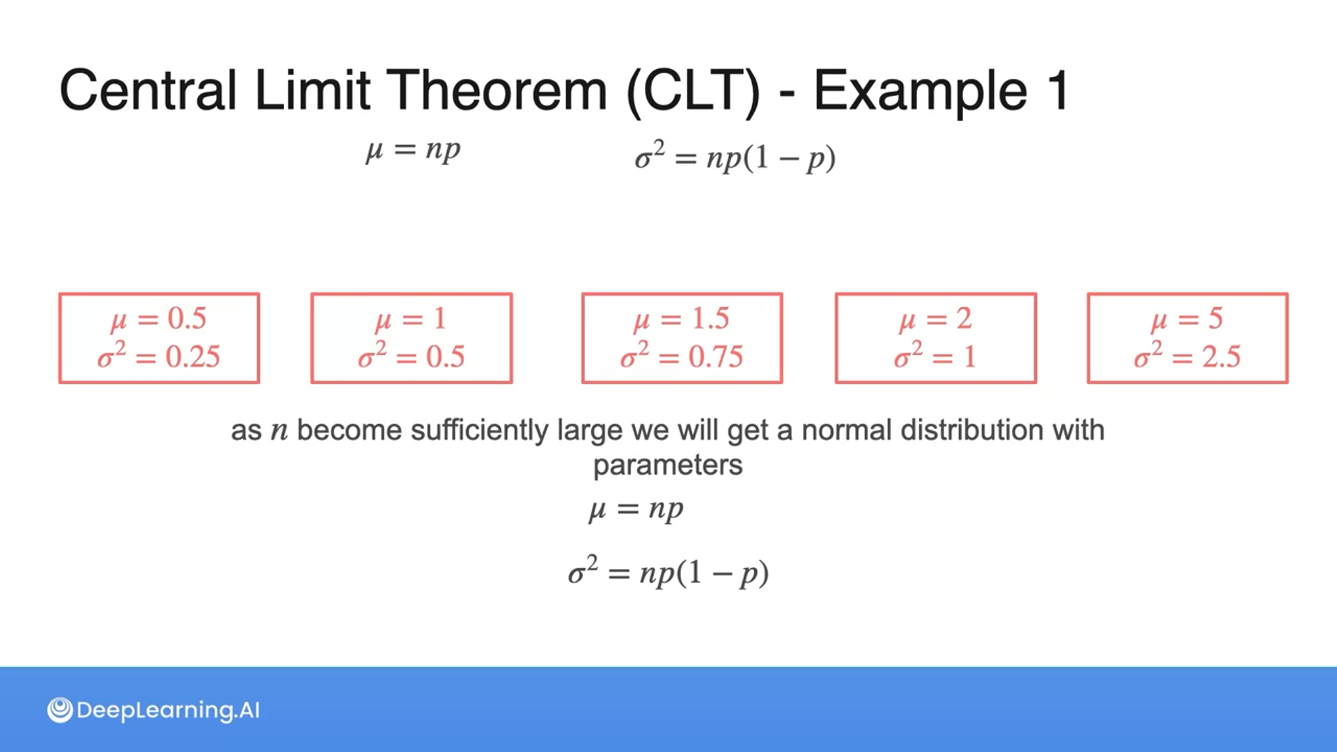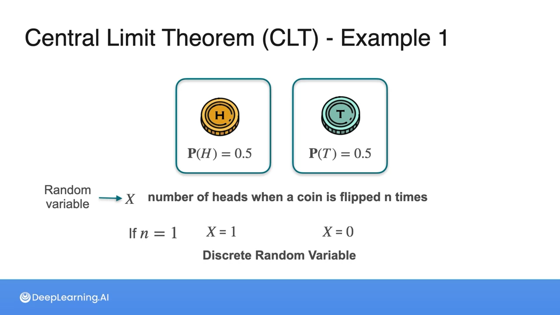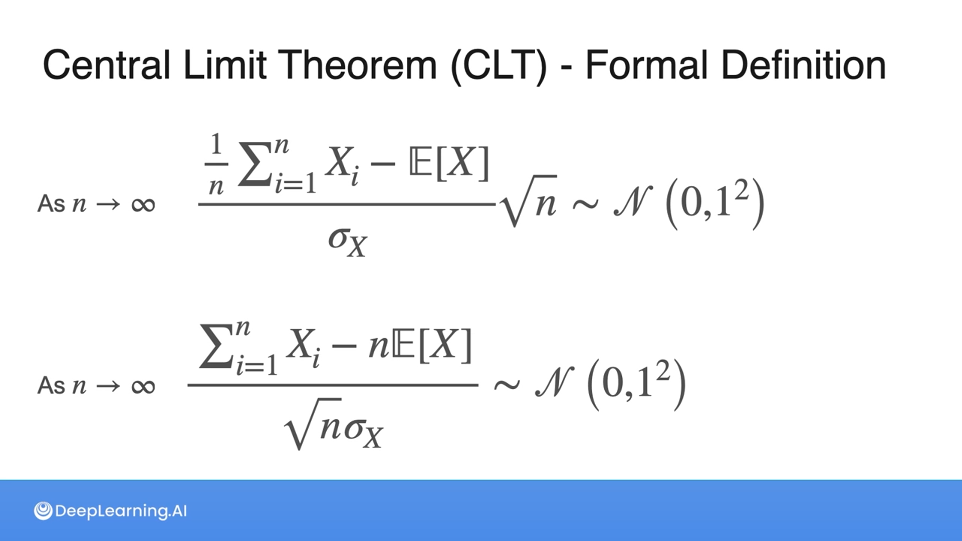 Central Limit Theorem: as n (number of samples) gets larger, the distribution forms more of the Gaussian (normal) distribution.