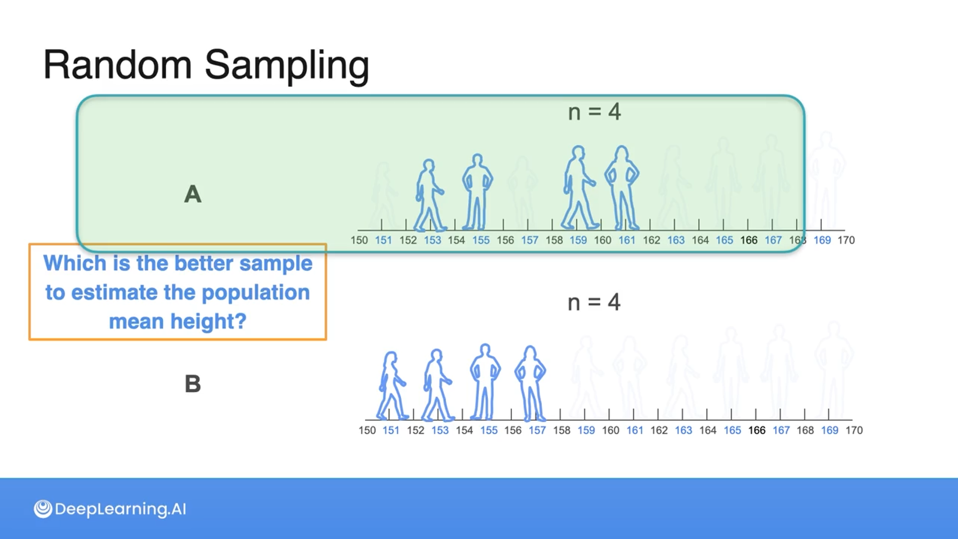 A random sample is more likely to represent the population because it avoids bias and ensures that each individual has an equal chance of being selected. Therefore, the mean calculated from a random sample is more likely to be closer to the population mean.