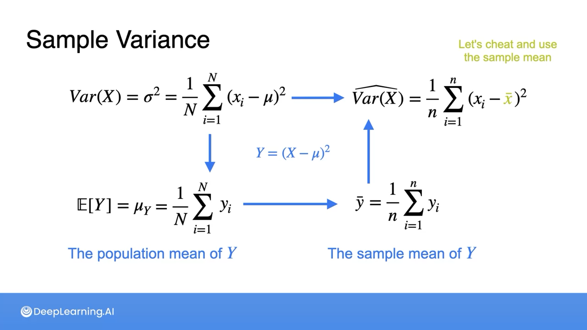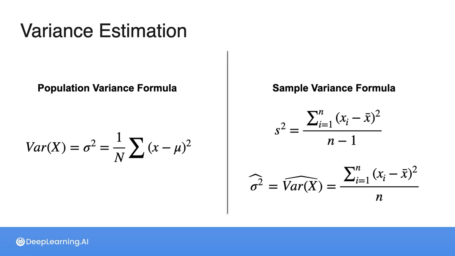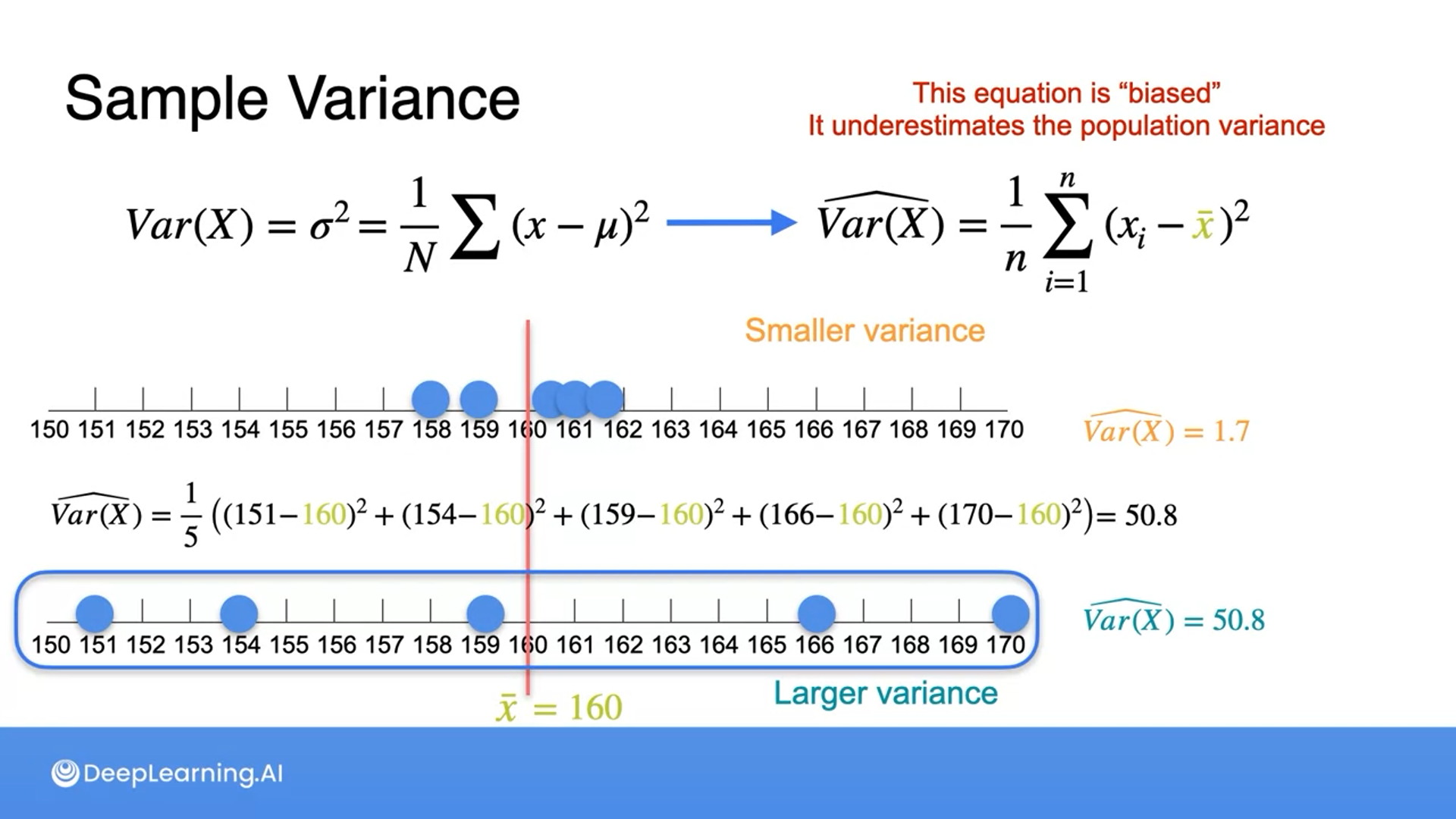 Subtracting the n (number of samples) by 1 in the denominator of the sample variance formula fixes the bias issue that we saw earlier.