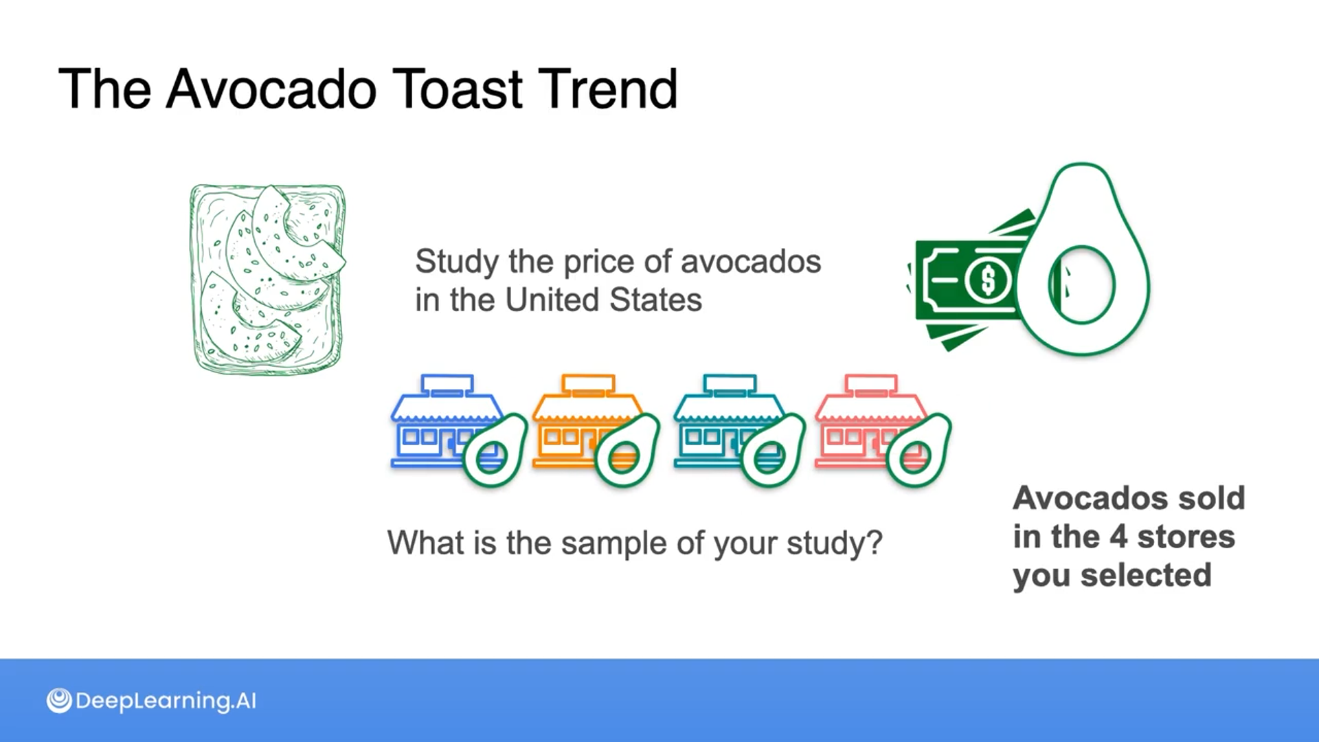 In your study about the price of avocados in the United States, what is the sample of your study?