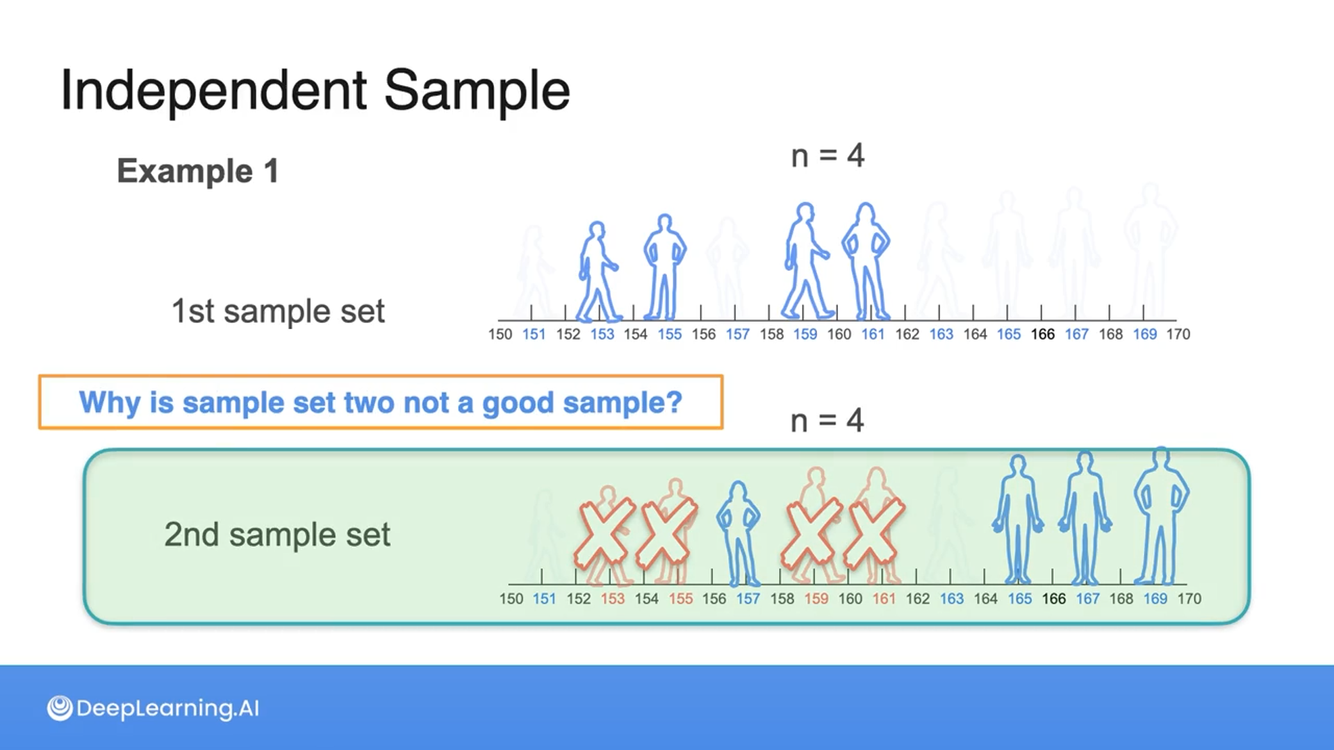 We do not want a case where one sample depends on the other samples (i.e. get the second sample set after picking the first sample set but not picking any samples from the first sample set).