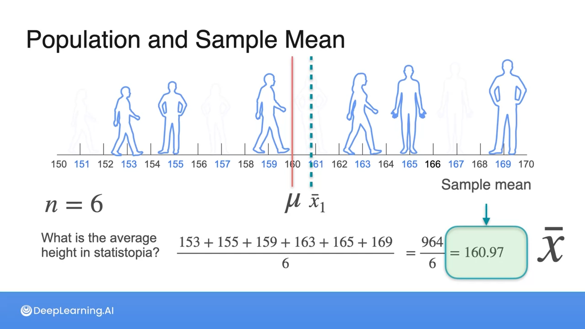 To calculate the population average, we calculate the average of the sample to get an estimate.