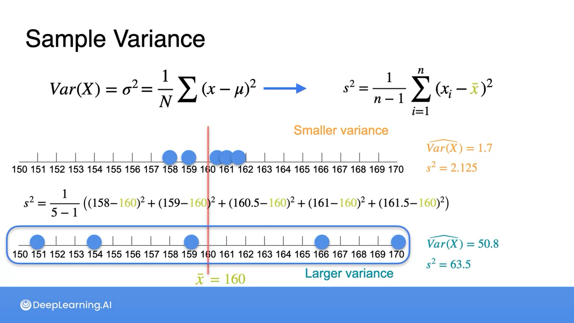 We can see in the third slide that when the sample size is small, the sample variance deviates from the population variance.