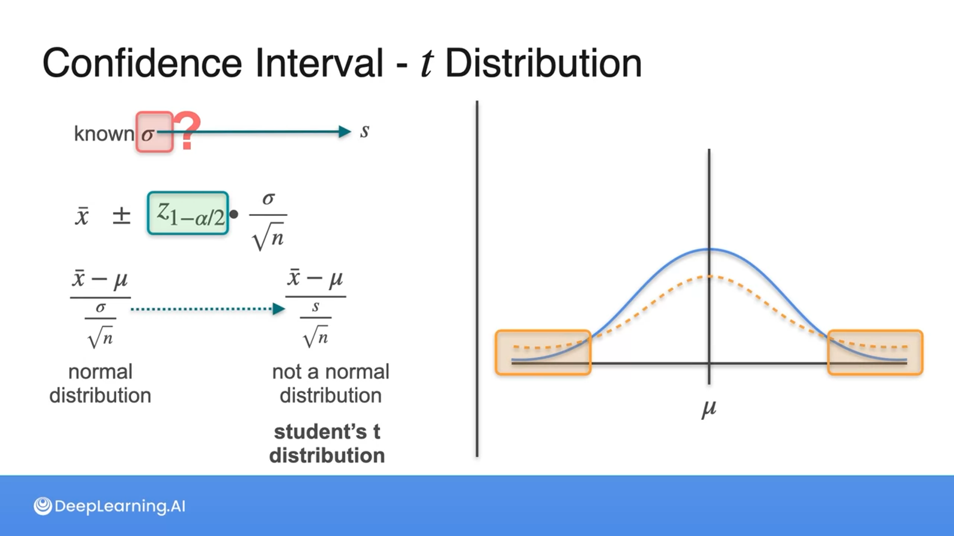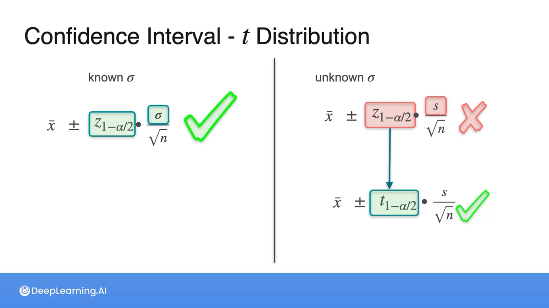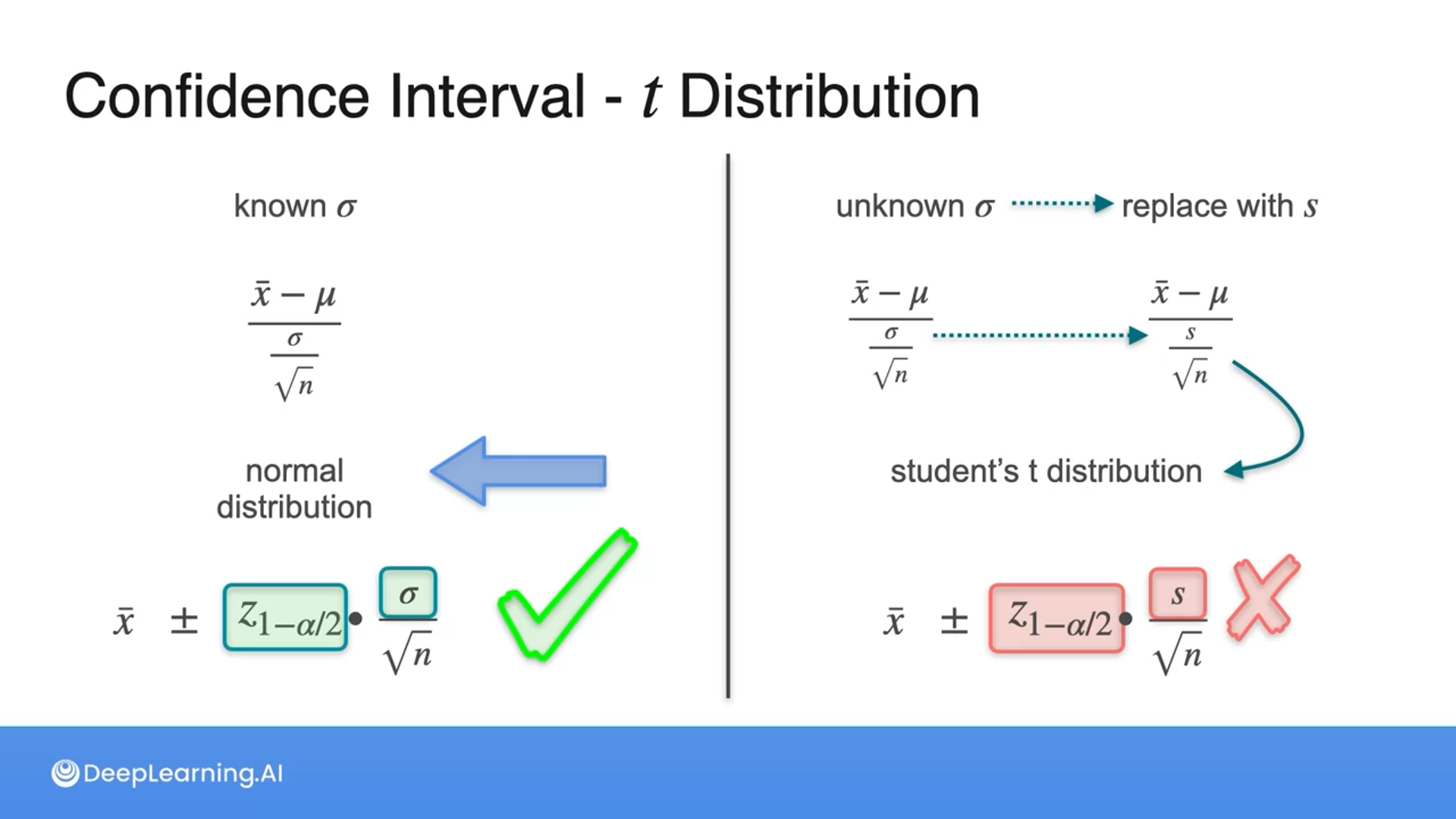 Since the critical value ($z_{1-\alpha/2}$) uses normal distribution, we can’t use the confidence interval formula with the known standard deviation.