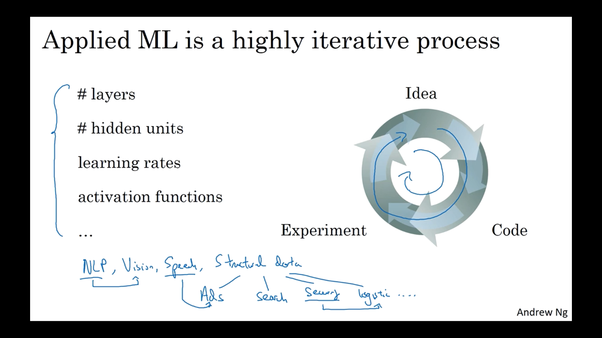 Applying machine learning to a field is highly iterative because we can’t set the same hyperparameters to find a global optimum in all datasets or models.