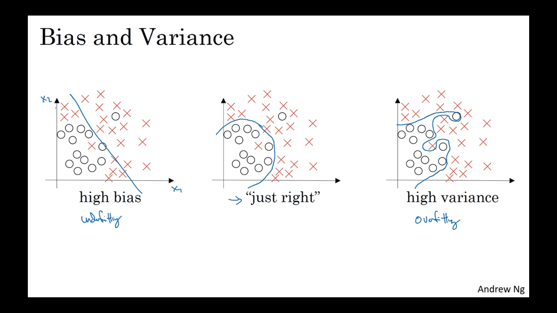 In deep learning, we can determine the above via train set and dev set errors because we can’t plot high-dimensional data.