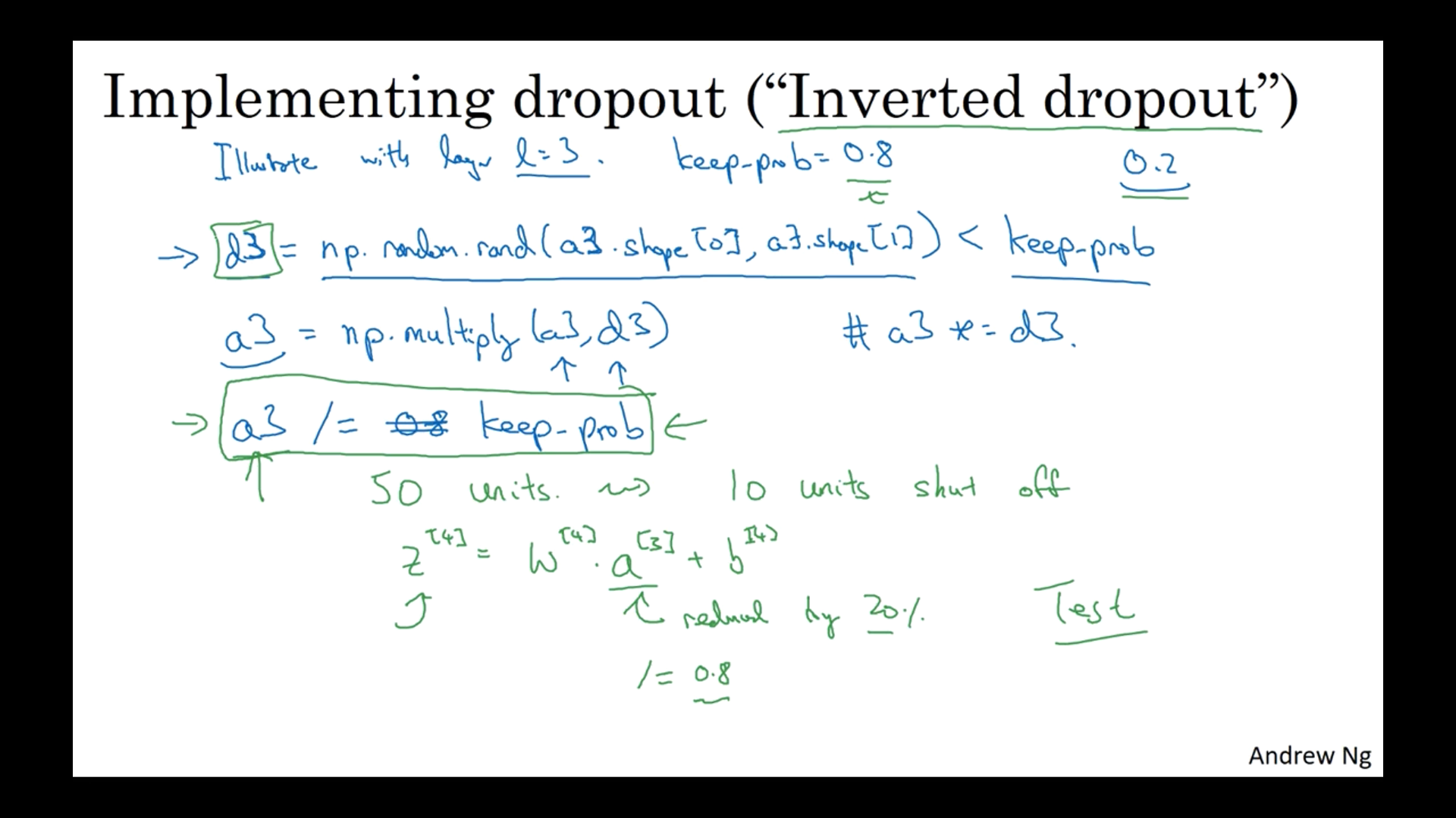 # Illustrated with layer l = 3 and keep_prob = 0.8
