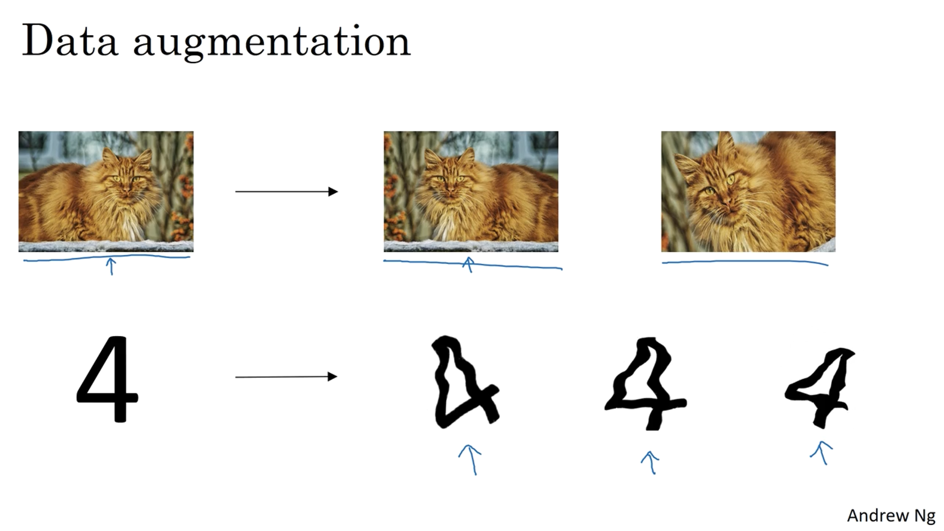 For instance flipping, randomly cropping an image, and putting it to the training set prevents overfitting. It is also better than finding data outside.