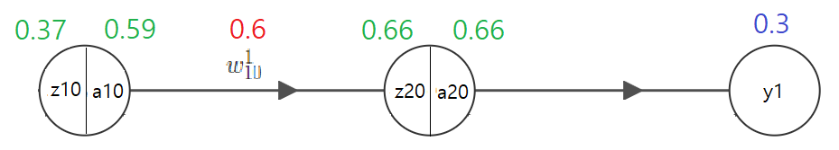 $$ {\partial z_{20} \over \partial w^1_{10}} = a_{10} = 0.59 $$