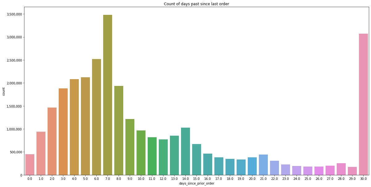 Reordering behavior emerged as a significant trend. Customers appeared to reorder items rather than purchasing entirely new products. This insight suggested a recurring pattern where customers frequently replenished items they consumed regularly. A closer examination of the reorder frequency confirmed this hypothesis, indicating that many products were reordered within a 7-day cycle.