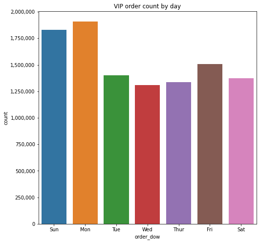 Our analysis of VIP purchasing behavior revealed that this customer segment predominantly buys fresh produce, dairy products, and snacks. These purchases often occur on Mondays between 9 AM and 11 AM, with most items reordered within a 7-day cycle. The nature of these products—perishable and frequently consumed—makes them integral to the company’s revenue. However, their consistent demand also highlights an opportunity to expand VIP purchasing behavior beyond these high-revenue items to underperforming product categories.